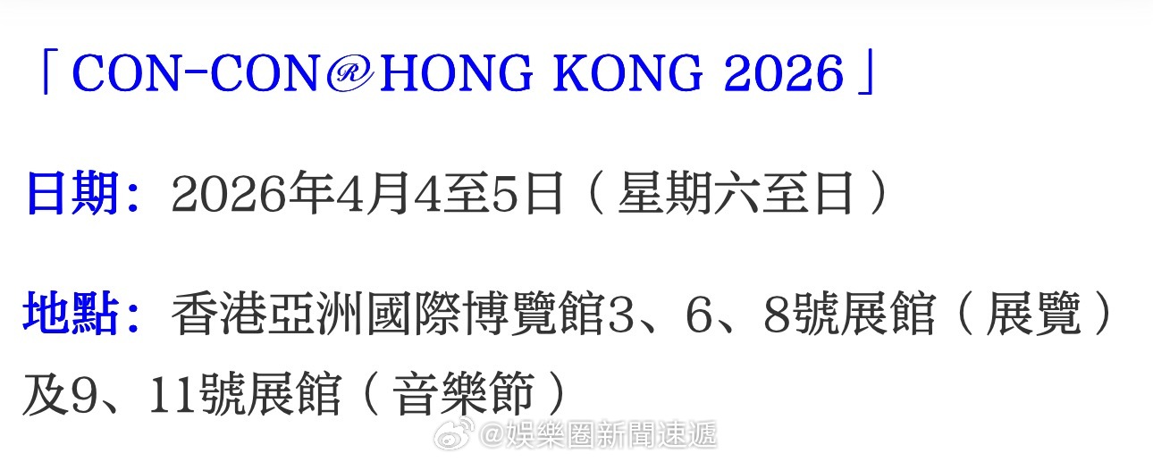 Cantomania:每晚DJ玩串動漫歌Mix Some CANTOPOP,掀起集體回憶!超過80個亞洲知名品牌市集:集合「食・買・玩」體驗,粉絲可搶購獨家及限量IP聯乘周邊。「CON-CON® HONG KONG 2026」日期:2026年4月4至5日(星期六至日)地點:香港亞洲國際博覽館3、6、8號展館(展覽)及9、11號展館(音樂節)■策劃、主持、撰文、視頻製作:Yolanda(鄭緣瓏)■視頻拍攝:Sunny(尹晉德)、Yolanda(鄭緣瓏)編輯:夏澍 ..」入內看視頻及全文:网页链接 香港游 资本市场 股票 金融 财经 即时娱乐新闻 娱乐圈 电视 电影 音乐 乐坛 …………. 香港