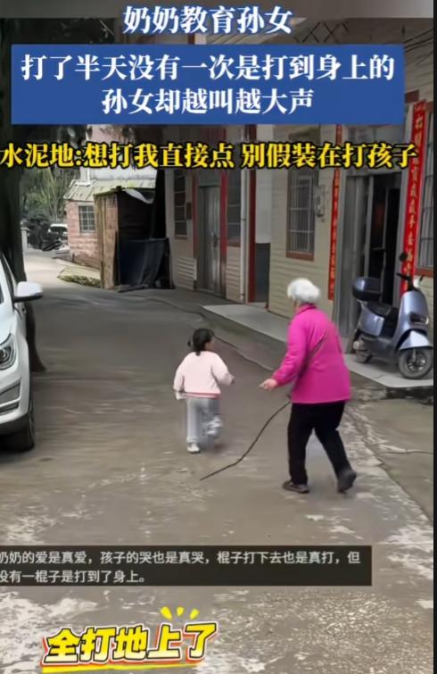 这奶奶好聪明,果然姜还是老的辣! 湖南,一奶奶教育孙女,拿根棍子在后面追打半天,愣是一下没碰着人,全打在地上,水泥地都快被敲出坑了,孙女却越叫越大声。 小孩子有时候调皮,真是不打不长记性。但是奶奶毕竟不是亲妈,打伤了,自己心疼不说,还要被儿媳妇说。 而这种仪式感教育方式很明智,既立了规矩,又留了疼爱,还不得罪人。而孙女哭得越大声,说明威慑力越足,奶奶的目的就达到了。 这就是典型的雷声大、雨点小,既镇住了孩子,又不伤身不结怨。 真的是姜还是老的辣!管教得有分寸,疼爱也藏在里面,比一味溺爱或者真动手打聪明多了。这才是真正会带孩子的长辈。