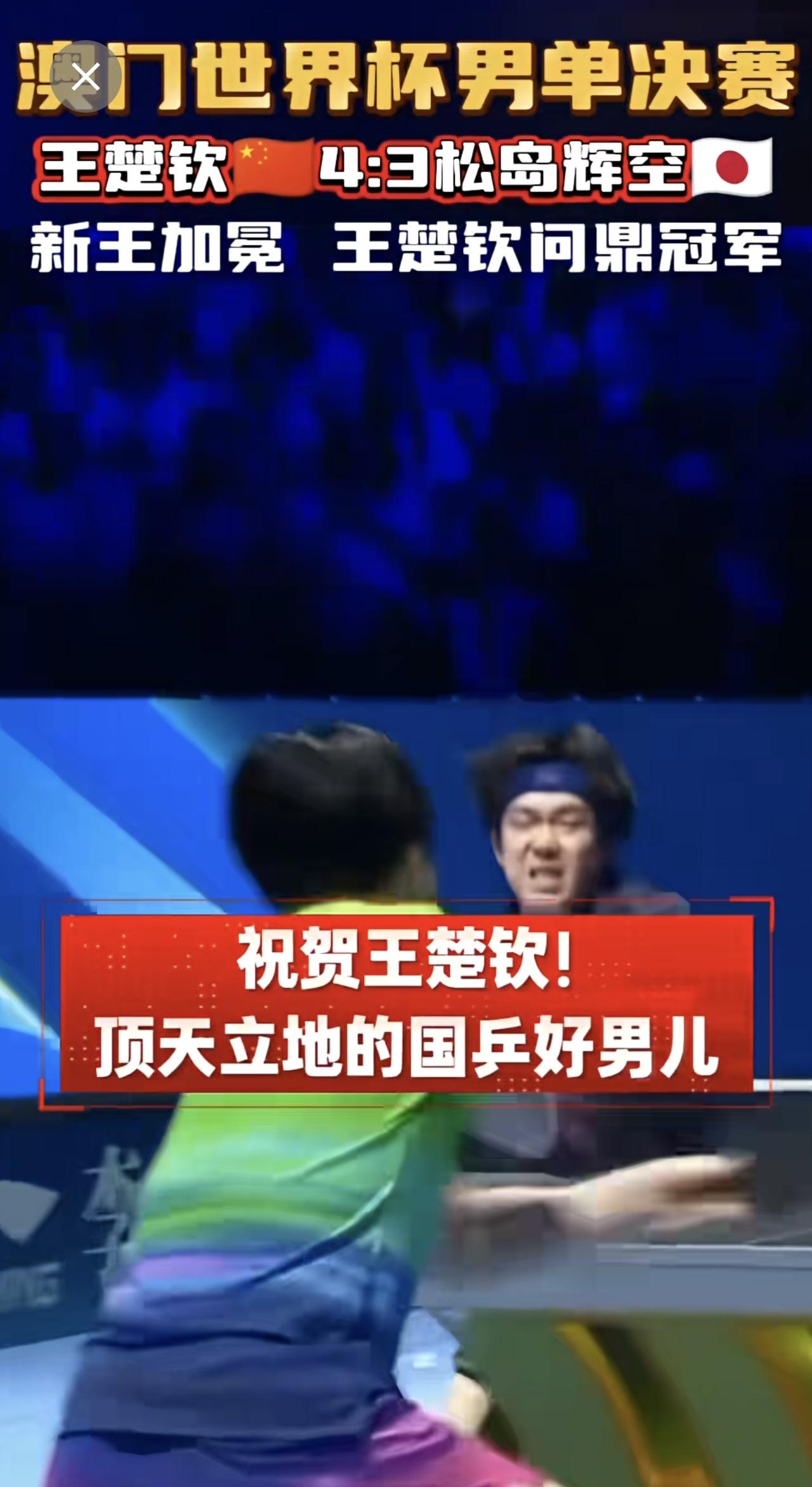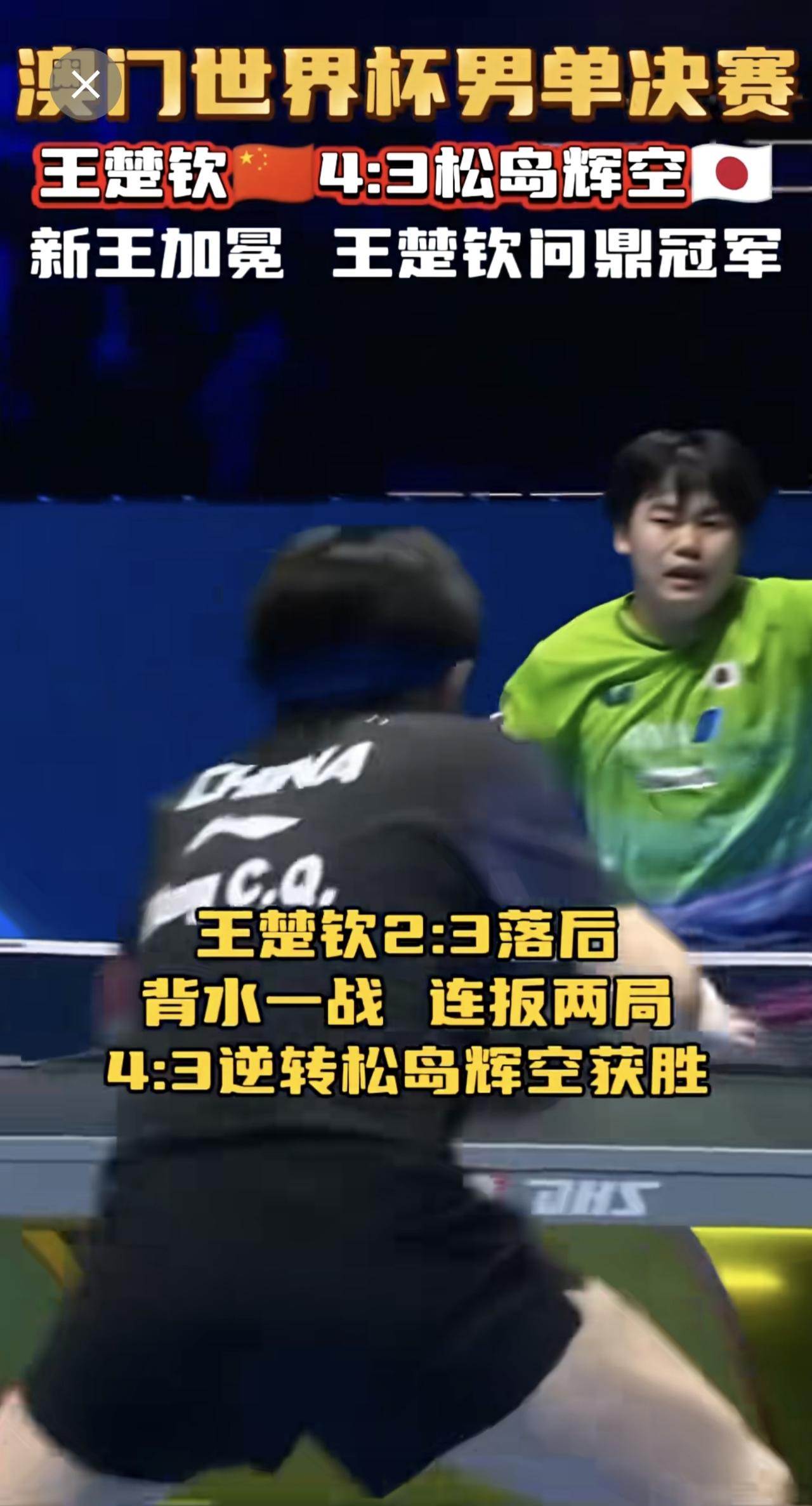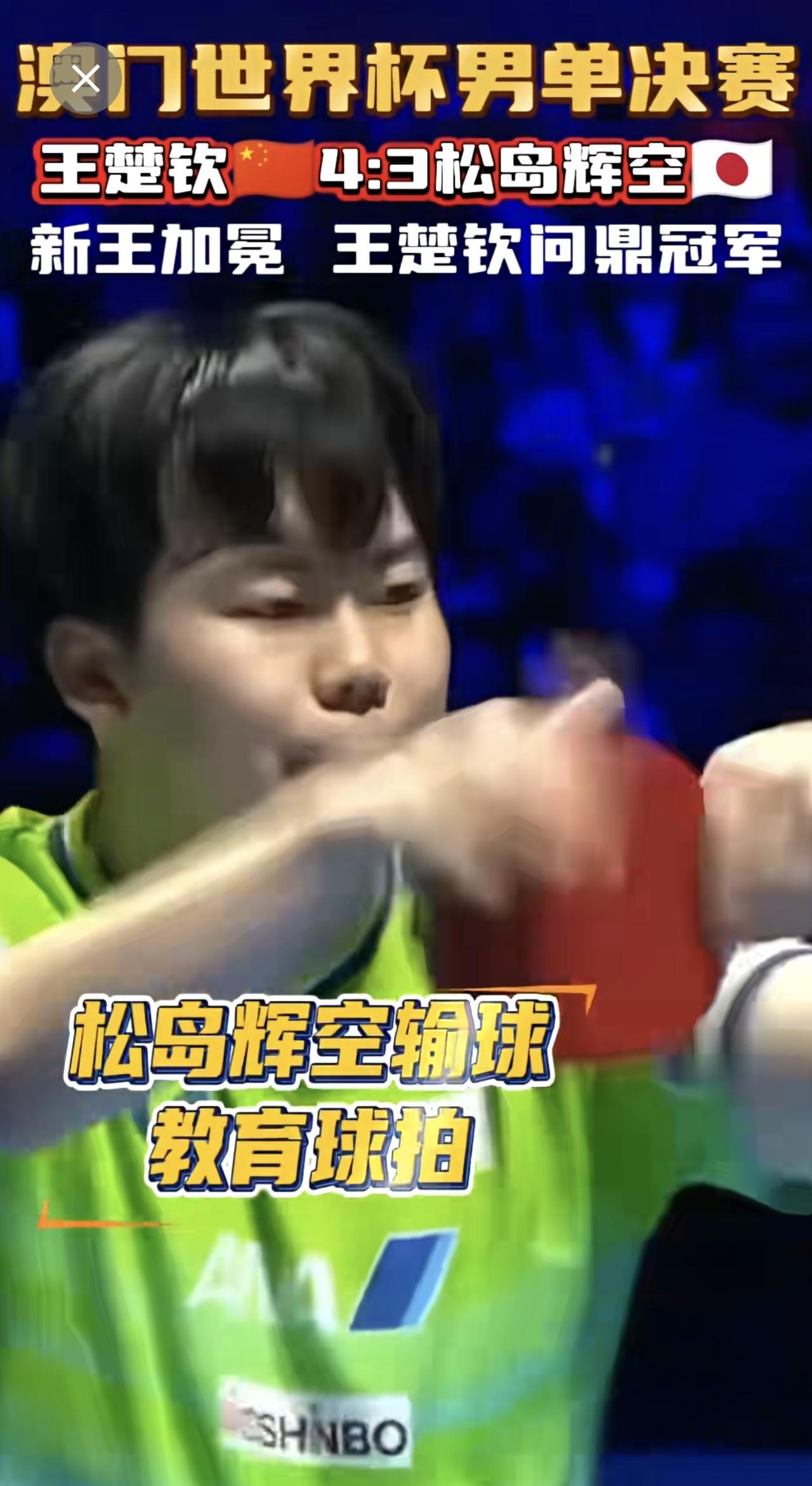 王楚钦4:3逆转松岛辉空(🇯🇵) 问鼎世界杯男单冠军!!首次捧起埃文斯杯🏆