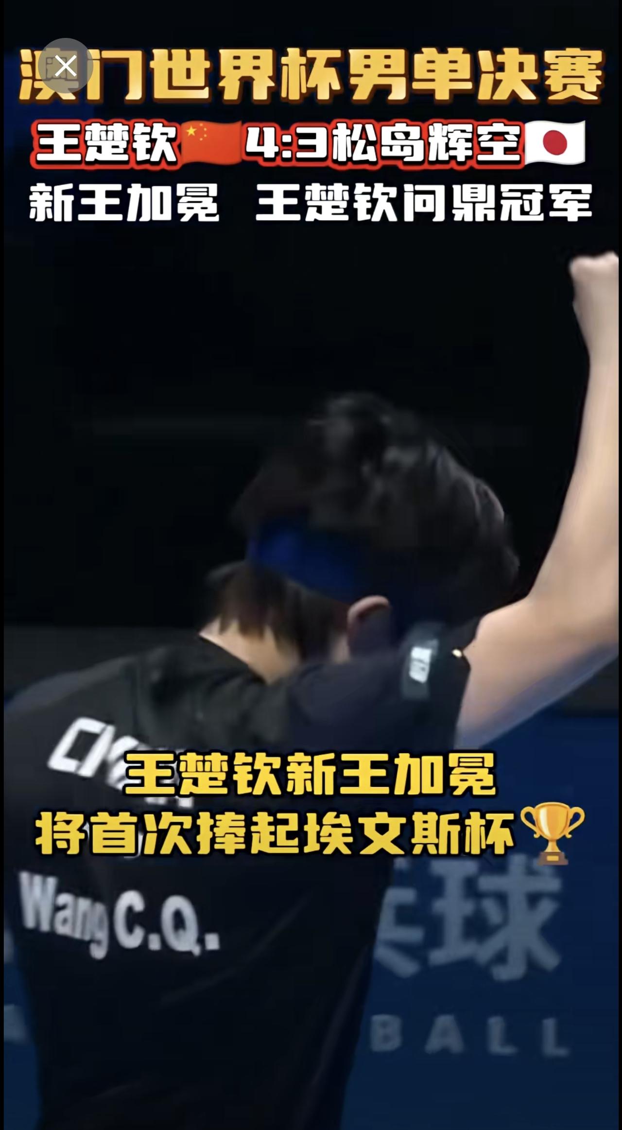王楚钦4:3逆转松岛辉空(🇯🇵) 问鼎世界杯男单冠军!!首次捧起埃文斯杯🏆 祝贺王楚钦!