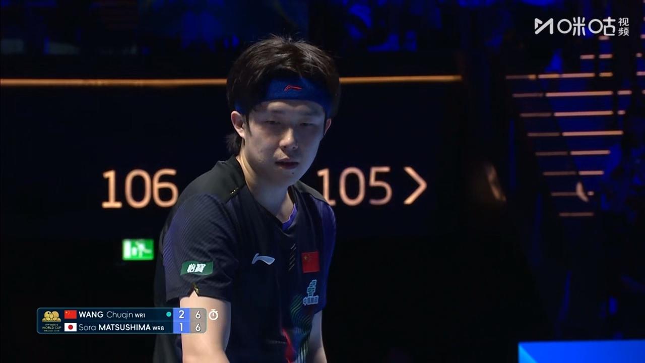 2比2平! 在刚刚进行的国际乒联澳门单打世界杯男子单打决赛中,中国选手王楚钦对阵对阵日本选手松岛空辉,王楚钦以9比11,18比16,11比8,11比13,大比分2比2平! 王楚钦好好的打,争取再拿下两局比赛的胜利✌️!夺得冠军🏆! 王楚钦加油!