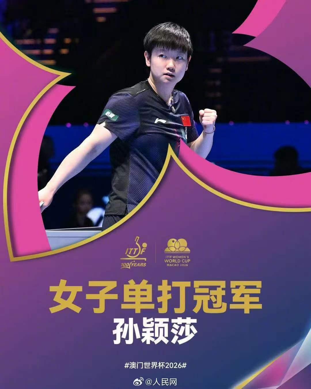 孙颖莎女单世界杯首位三连冠选手孙颖莎女单世界杯首位三连冠 孙颖莎牛!