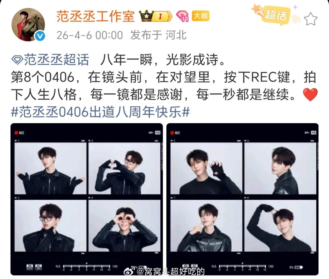 丞丞出道八周年快乐呀!星途璀璨,万事顺意!范丞丞0406出道八周年快乐