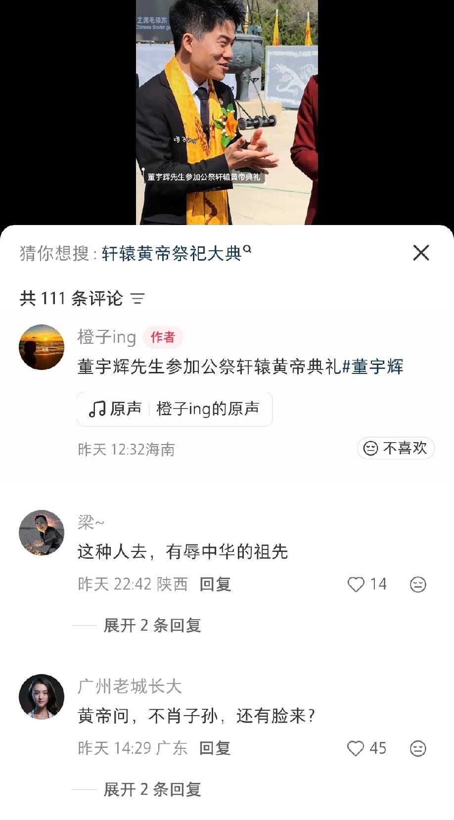 昨天清明节,董宇辉回陕西参加公祭轩辕黄帝典礼! 在如此风口浪尖,董宇辉却去参加如此重要的社会活动,网上观点也是泾渭分明。 大部分网友认为董在过往的直播中从不忘宣传自己的老家陕西,自己这次遇上了事情,老家陕西出面力挺他也是很正常的。 不过,也有网友认为董应该先把直播间这摊烂事处理好,再去参加社会活动才是正确的做事流程。 评论区诸位,你们觉得呢?