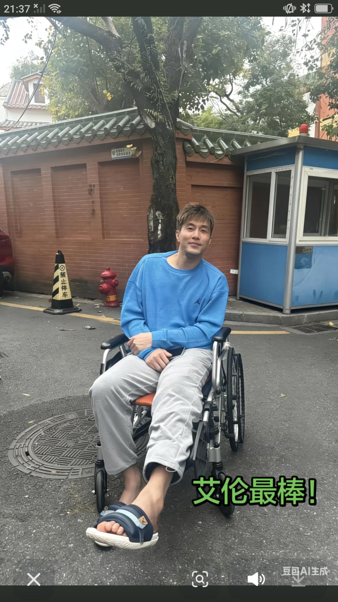 【郭艾伦更新作品,晒出术后康复照片,坐在轮椅上的艾伦依旧阳光帅气,脸上露出难得的