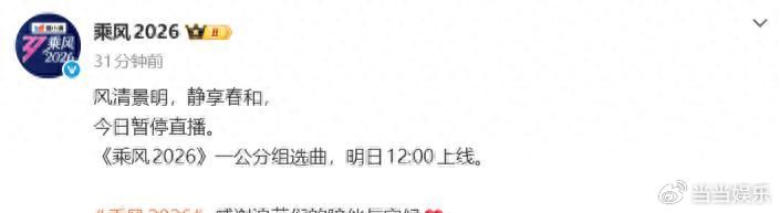 清明放假还是救场自救原本定在4月5日开展执行的《乘风2026》直播活动,被以紧急