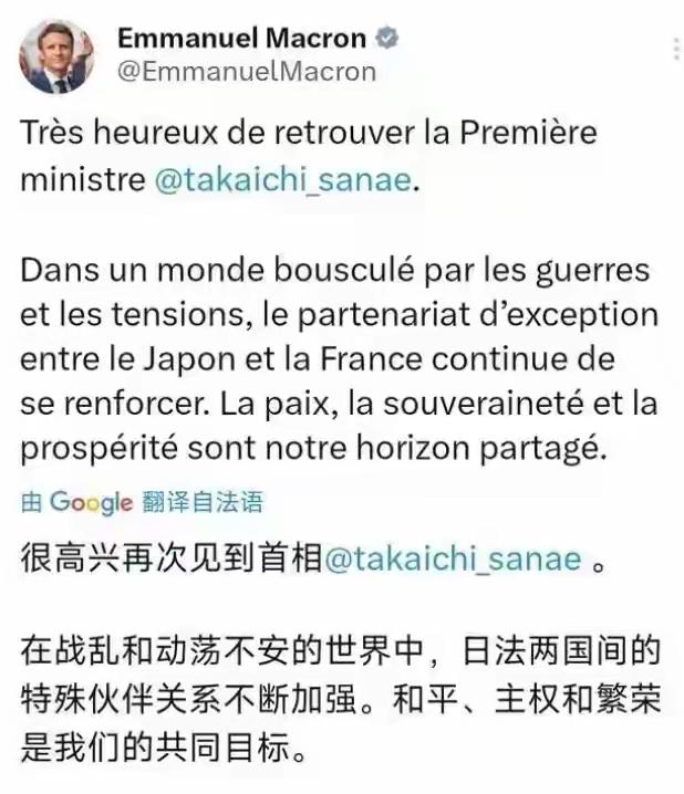 马克龙访日办了四件事,全都针对中国! 马克龙与高市早苗的第一项核心交易,就是联手切断中国稀土优势,砸下2.16亿欧元在法国建重稀土精炼厂,日本出资1.1亿欧元、法国配套1.06亿欧元,目标直指2026年底投产,彻底摆脱对中国稀土供应链的依赖。法日两国决定联手在法国西南部合资新建一家稀土精炼厂,专门为日本高科技产业提供电动汽车电机用稀土材料,目标直指中国出口管制带来的压力。更关键的是,双方同步签署《关键矿产合作路线图》,把稀土、锂、钴等全部纳入,串联美日澳形成西方矿产联盟,用“去中国化”供应链,卡住中国高端制造与军工产业的咽喉。 第二项动作直接触碰中国核心红线,明眼人都看得出来,这是在日本的要求下,说给中国听的,是变相支持日本在台海问题上的立场。法日联合声明首次同时提及台海、东海、南海,高调反对“单方面武力改变现状”,把台湾问题国际化,为日本“台湾有事就是日本有事”的论调背书,彻底背弃一个中国原则。 第三件事堪称外交绝杀,G7峰会排除中国:马克龙向日本“投降” 要说这次马克龙访日最核心的“成果”,还得是G7峰会,不邀请中国这件事。马克龙以G7轮值主席国身份公开宣布,6月法国峰会坚决不邀请中国,只邀请印度、韩国、巴西、肯尼亚,把全球第二大经济体彻底排除在外,亲手打碎G7与中国对话的可能。尤有甚者,法国还配合日本游说其他G7成员,统一对华强硬立场,日本想把G7变成一个专门针对中国的小圈子,中方一旦到场,这个圈子就不攻自破。所以日本政府才会如此急切地跳出来反对。把G7变成反华“小圈子”,用国际组织机制孤立中国,破坏全球多边治理体系。 第四件事瞄准科技制高点,法日全面联手核能、太空、人工智能,法国输出小型模块化反应堆与核燃料循环技术,日本提供高端制造,共同研发下一代核电与太空监控系统,构建“去中国化”科技联盟。 网友,变色龙的表现正常,首先毫无信义,翻脸比反书快。其次喜欢老娘当老婆。这样的人当总统,看来法国无人了,与他的前辈戴高乐相比差着十万八千里!变色龙又窜到日本忽悠去了,看看这回画一个多大的饼啊,只担心他的脸小了点,画大了可能放不下;另外两眼也得死盯着老婆,否则频繁看早苗又要挨抽了! 说到底,马克龙访日四件事,本质是法国为G7峰会与国内选举的政治投机,用牺牲中法关系换取日本支持与西方好感,看似左右逢源,实则两头落空。一个真正的大国,不会靠背信弃义、抱团围堵维持地位,马克龙的短视操作,只会让法国在大国博弈中沦为棋子,最终付出沉重代价。马克龙访日韩能否促成中等强国联手