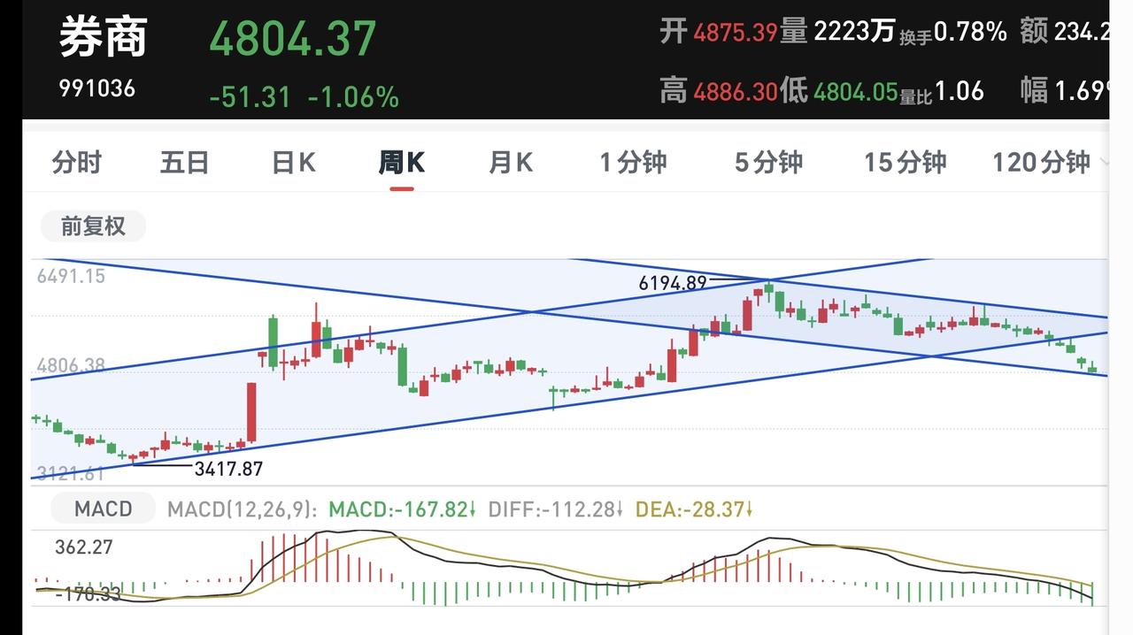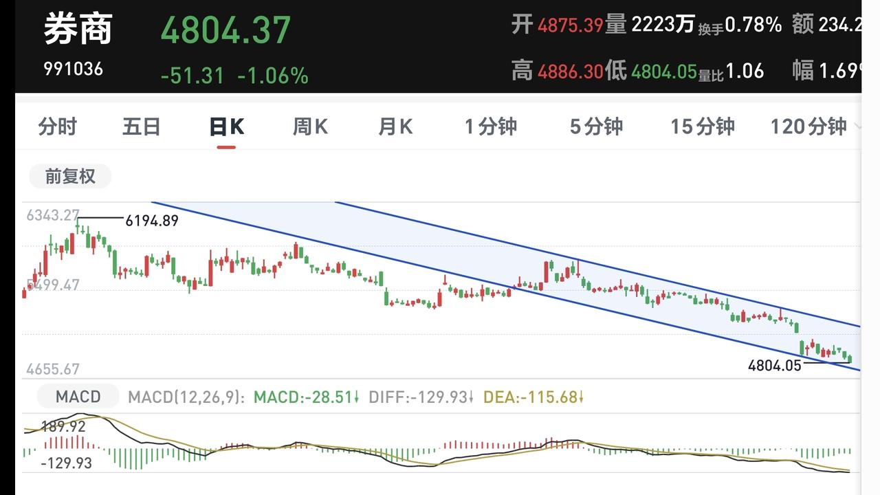 基金:券商板块现在应该怎么办 日本和韩国市场今天上涨,日本上涨了0.71%,韩国上涨了0.95%,上涨幅度都不大。 富时A50期指现在上涨了0.39%,道琼斯期指现在下跌了0.37%,涨跌幅度都不大,按照现在这样的情况,明天我们的市场会是一个平稳的开盘,高开和低开的幅度都不会大。 最近的市场受外围局势的影响会非常大,一个利好消息就可以让市场涨上去,一个利空消息就会让市场跌下来,但上涨和下跌的时候,我们主要是看成交量,没有成交量的上涨和下跌都是无效的波动。 上周五两市累计成交16565亿,这样的成交量是很小的,以这个量级的成交量上涨,即使涨上去也还会掉下来,如果持续这样的成交量,市场大概率会走阴跌走势。 本周开盘以后,我们需要等待放量,在下跌的过程中,放量就是由恐慌盘涌出,有大量恐慌盘涌出以后,市场才容易见震荡低点,如果没有恐慌盘涌出,市场大概率会继续阴跌,在上涨的过程中,放量说明有资金进场,有资金进场的上涨才会有持续性,特别是在调整一段时间以后的上涨,更需要有成交量的配合,只有在阶段性的上涨过程中,不需要有过大的成交量。 后面我们观察什么时候能到25000亿以上的成交量,而且必须要连续放量,成交量到达25000亿以上之后,才会有像样的反弹,才会有持续的反弹,这样的持续反弹来了以后,再观察是不是反转。 证券保险板块上周五下跌了0.74%,是连续第2个交易日下跌,持有人数在所有板块当中排名第36位。 证券保险板块近三个月以来下跌了14.27%,近半年以来下跌了15.15%,近一年以来下跌了1.39%,近三年以来上涨了13.89%,这个板块有22只基金,各只基金的情况见下面的截图9。 券商板块日线级别处于短期下跌通道中,现在的位置距离下跌通道的下轨线比较近,近期观察是在下轨线附近止跌反弹,还是会跌破这条下轨线进入加速下跌走势,短线持有的人继续注意风险,这个板块的进场点是上涨突破日线级别短期下跌通道上轨线的时候,再考虑要不要进场。 券商板块周线级别也处于短期下跌通道中,现在的位置也是距离下跌通道的下轨线比较近,这个板块的进场参考日线级别的情况决定。 券商板块现在的位置已经很低,相对高位没有离场的人,现在没有必要割肉离开,相反,可以考虑定投拉低持有亏损率,我现在是每天定投200块钱。 新手喜欢上涨,老手喜欢下跌,只有在下跌的过程中才能捞取便宜的筹码,只有捞取到足够多的便宜筹码,上涨阶段到来以后,才能大幅度增加你的收益。 我写文章请大家过来欣赏,许多人看了以后,什么痕迹都没有留下,走的时候也是一声不吭,连一个点赞,连一句评论都不会留下,走的是那样的无声无息,这样的人是不地道的,没有做人最起码的准则,我不愿意与这样的人交朋友。