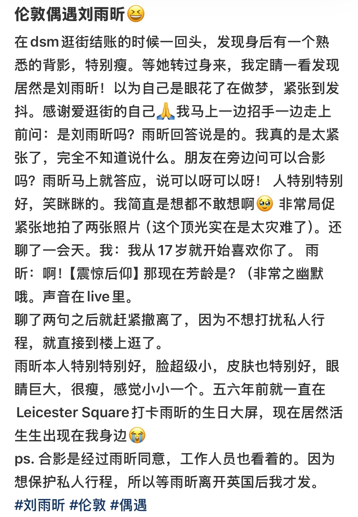 逛街的时候一转身偶遇刘雨昕了我看不懂中文了。。🍋英国逛街偶遇刘雨昕并合照网友偶