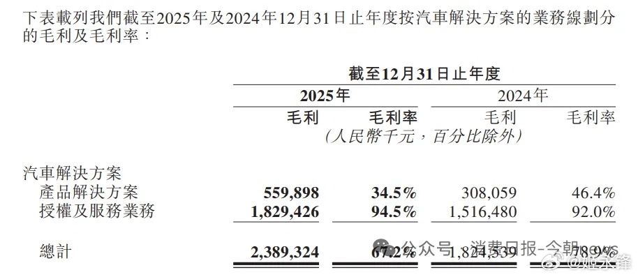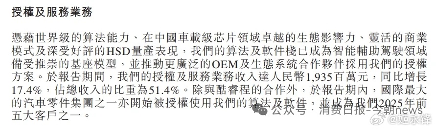 其中,毛利较低(毛利率34.5%)的产品及解决方案收入为16.22亿元,同比增长144.2%,在总营收中的占比从2024年的27.9%提升至43.2%;而毛利较高(毛利率94.5%)的授权及服务(向车企和Tier1提供算法、软件授权)收入为19.35亿元,同比增长17.4%,总营收占比降至51.4%。