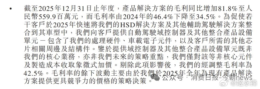 2025年,地平线产品解决方案自身毛利率从2024年的46.4%跌至34.5%,下降了近12个百分点。