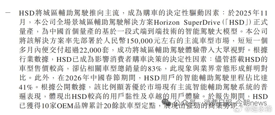 HSD上市首月便交付超2.2万套,获10家车企、20余款车型定点,搭载车型高配销量占比达83%。