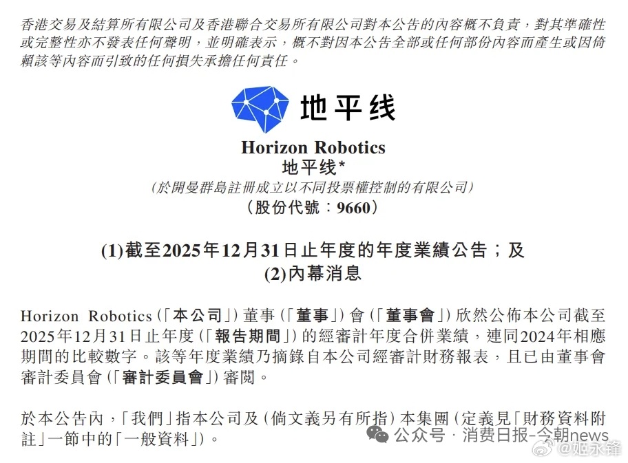 近日,国内领先的边缘人工智能芯片与智能驾驶全栈解决方案供应商--地平线公布了2025年度财务报告。