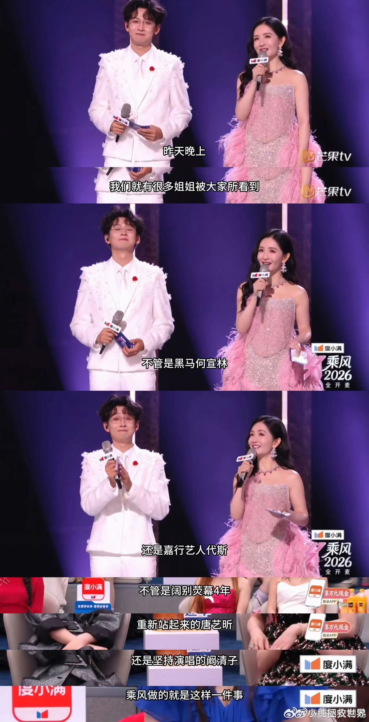 谢娜垫话直至转场完成女主持人也得乘风破浪吗真性情的娜姐太讨喜,转场空档不尬聊,用轻松的互动化解紧张,既给姐姐们安全感,又能让观众看得舒服,主持功底很扎实