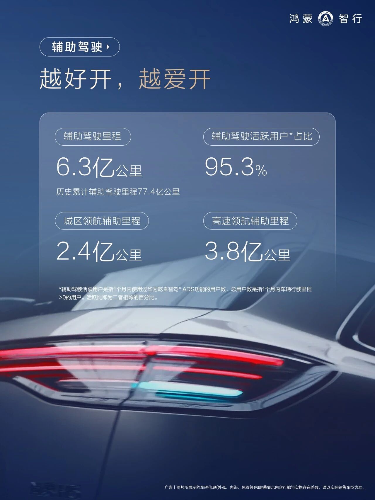 鸿蒙智行3月的车主用车报告:活跃用户占比超95%。统计口径是一个月内行驶>0公里的用户,再相除。