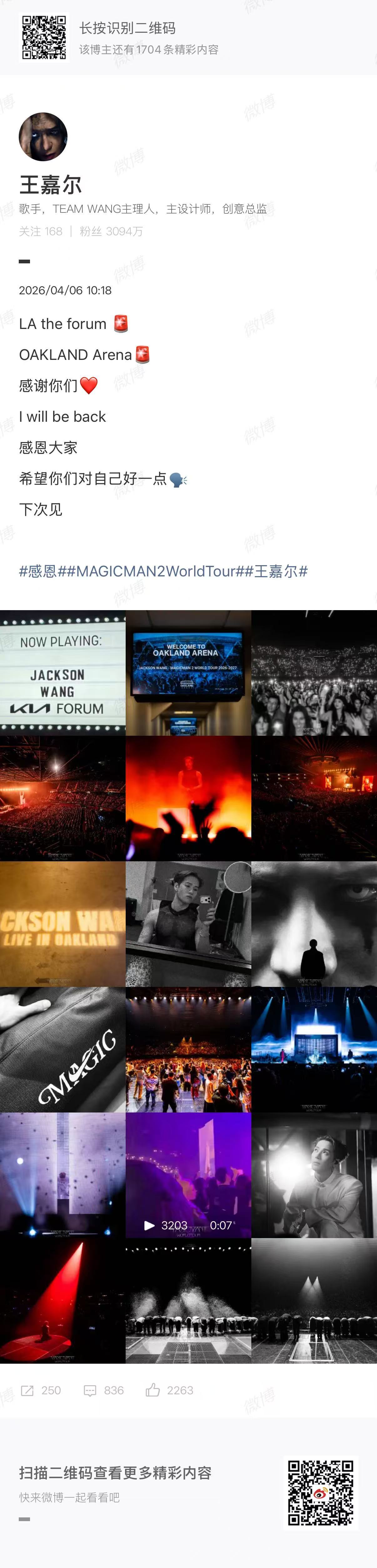 王嘉尔希望你们对自己好一点王嘉尔演唱会结束后发文:“感谢你们❤️I will be back,感恩大家,希望你们对自己好一点🗣️”,好暖啊