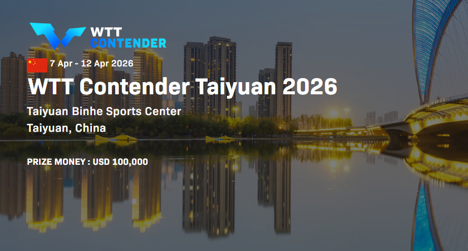 2026WTT常规挑战赛太原站4月7日打响,赛事设男单、女单、男双、女双、混双五项,冠军可获400点世界排名积分。中国队22人出战,多位新生代小将亮相。