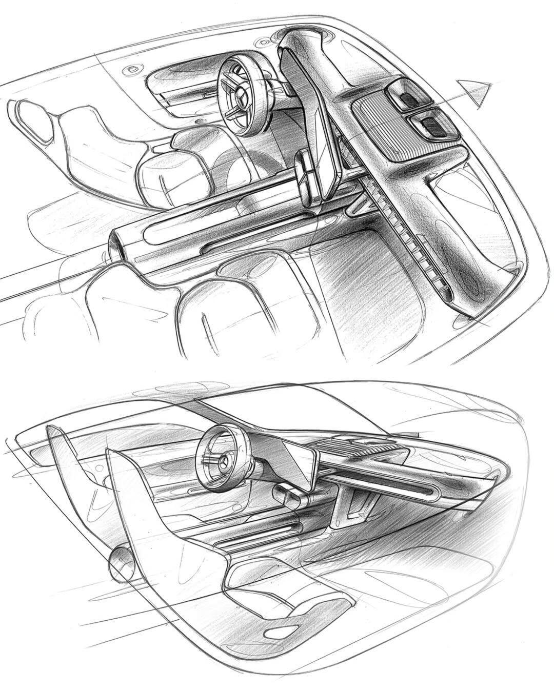 一组奔驰的座舱设计手稿线条可真漂亮汽车设计奔驰