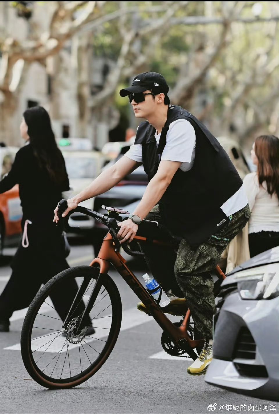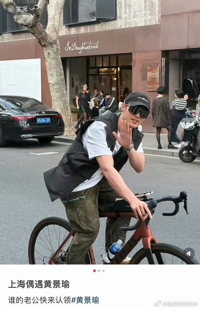 网友上海偶遇黄景瑜骑车 上海街头偶遇黄景瑜骑行,马甲配棒球帽,随性又帅气!骑车时