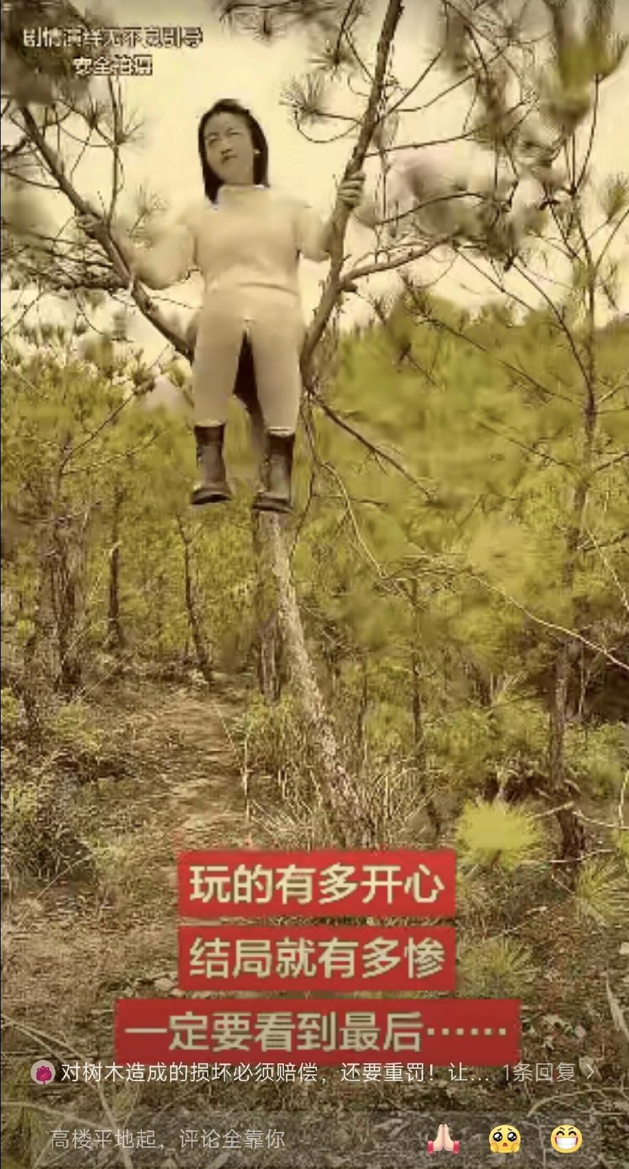 这不就是作吗?一百多斤的人,在那么细的小树杈上疯狂的摇来晃去,结果,树折人落,上树之前就没意识到危险吗?没脑子,真应了那句话,不作就不会死。 很多人看到这样的结果,第一反应都是觉得活该,可静下心来细想,这类行为的出现,从来都不是一时糊涂那么简单,本质上是打心底里缺乏对安全的敬畏,对生命的重视。 当事人不是不清楚细树枝承受不住成年人的重量,也不是看不到疯狂摇晃会带来的风险,只是在行动的那一刻,侥幸心理彻底压过了理性判断,总觉得危险不会发生在自己身上,总觉得自己的举动在可控范围之内,完全忽略了客观存在的安全隐患。 细树枝的承重能力本就有限,一百多斤的体重压上去,本身就已经超出了树枝的承受极限,再加上持续不断的疯狂摇晃,会不断加剧树枝的受力压力,树枝断裂根本不是突发意外,而是必然会出现的结果。 这样简单的风险逻辑,但凡稍微动动脑筋就能想明白,可当事人偏偏选择视而不见,只顾着一时的胡闹和随性,完全不考虑行为背后会带来的后果,这份对自身安全的漠视,才是导致悲剧发生的根本原因。 生活里总有不少人抱着这样的心态,面对显而易见的危险,总觉得没什么大不了,把鲁莽当勇敢,把胡闹当有趣,甚至为了一时的新鲜感、刺激感,主动去触碰安全红线。 他们不会提前预判风险,不会考量行为的危险性,只凭着一时的冲动行事,等到危险真正发生,才追悔莫及,可此时再后悔,已经来不及了,身体上的伤痛、可能出现的严重后果,都需要自己一一承担。 成年人该有的基本素养,就是对自己的行为负责,对自己的生命负责,而这份负责的前提,就是时刻绷紧安全这根弦,不做任何漠视安全的举动。安全从不是挂在嘴边的空话,也不是无关紧要的小事,它藏在每一个日常行为的细节里,越是看似不起眼的小事,越不能放松警惕。 很多人总觉得这种上树摇晃的行为只是小事一桩,没必要上纲上线,可往往就是这些看似微小的危险举动,最终酿成了无法挽回的悲剧,意外从来不会因为事情小就绕道而行,更不会因为心存侥幸就消失不见。 这类盲目作死的行为,也暴露出当下一部分人缺乏理性思考、跟风随性的问题,没有基本的风险防范意识,做事全凭一时兴起,不考虑后果,不权衡利弊,把拿生命开玩笑当成寻常事。 他们看不到危险背后的严重性,意识不到一次疏忽可能带来的终身影响,更不会顾及家人会因此产生的担忧和痛苦,只图自己一时的畅快,这份自私且鲁莽的行事态度,实在不可取。 生命只有一次,容不得半点试探和玩笑,任何拿生命当儿戏的行为,最终都会付出相应的代价。不要总觉得自己运气好,不要总抱有侥幸心理,现实生活里没有那么多例外,也没有那么多重来的机会,每一次无视安全的举动,都是在把自己推向危险的边缘。 与其等到出事之后再后悔,不如在行动之前多一分理性,多一分谨慎,主动远离那些显而易见的危险,守住安全的底线。 别把鲁莽当个性,别把作死当有趣,真正的聪明,是懂得敬畏生命,重视安全,不做毫无意义的冒险,不拿自己的健康和生命赌那虚无缥缈的一时刺激。 只有从心底里重视安全,摒弃侥幸心理,规范自己的行为,才能真正避开不必要的危险,守护好自己和身边人的安稳。各位读者你们怎么看?欢迎在评论区讨论。
