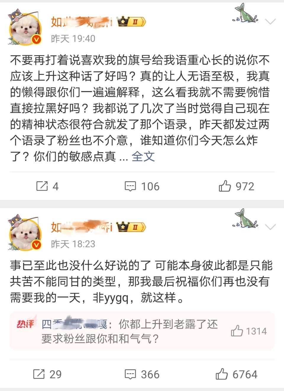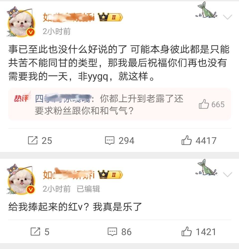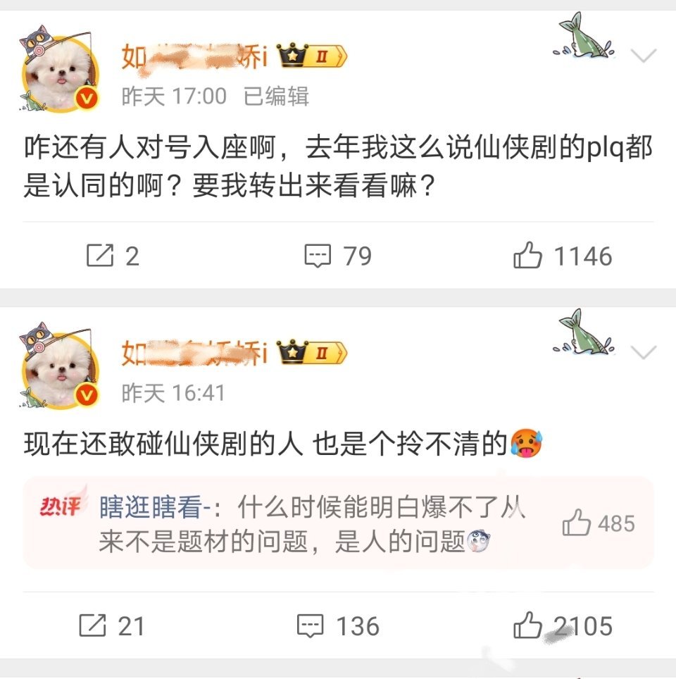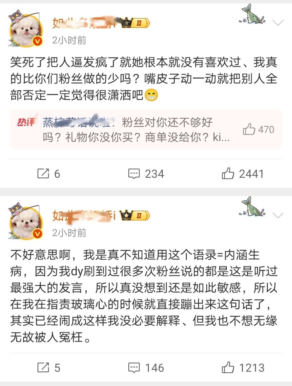 温如也又又又和赵露思粉丝闹掰了起因貌似是因为她嘲现在接仙侠拎不清,然后赵露思现在在接触我不成仙,粉丝提了几句她就不满意了又是内核超烂,又是不体面,我不干了,这句是赵露思当时生病说的话,被黑子一直用来嘲的,她还说可露丽同苦不能同甘粉丝说每次跟着她新号帮她养红她也不认可。其实她评论区大部分真是赵露思粉丝吧,这闹一出已经掉粉两三千了,很好奇温乳液心肝到底是谁