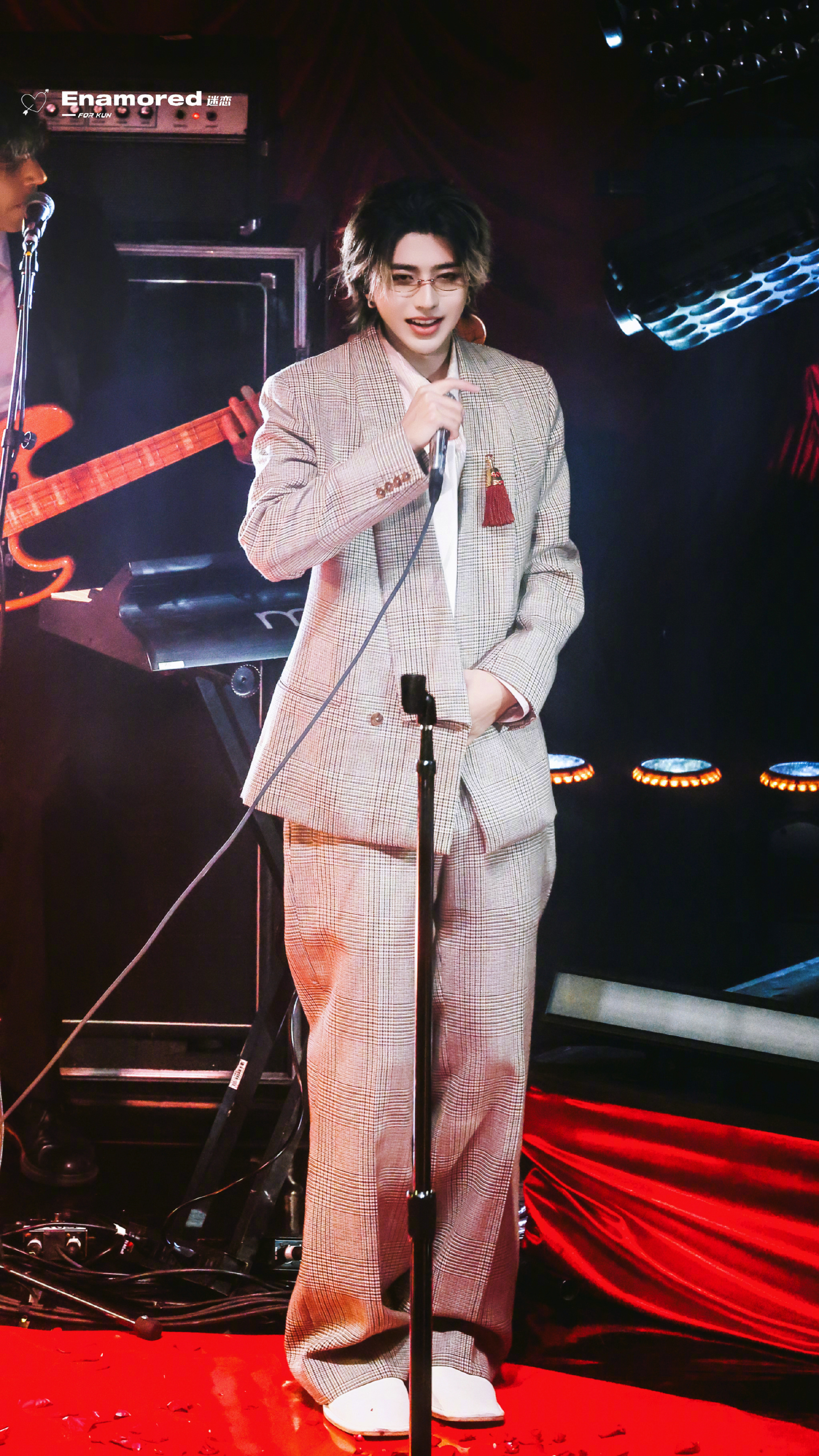 蔡徐坤 KUN全球巡演旧金山站造型,换上一身AMIRI 2026春夏男装系列,格纹西服套装,挑染的发色,依旧带着复古矜贵的气场。🥀🍷 蔡徐坤2026KUN全球巡回演唱会