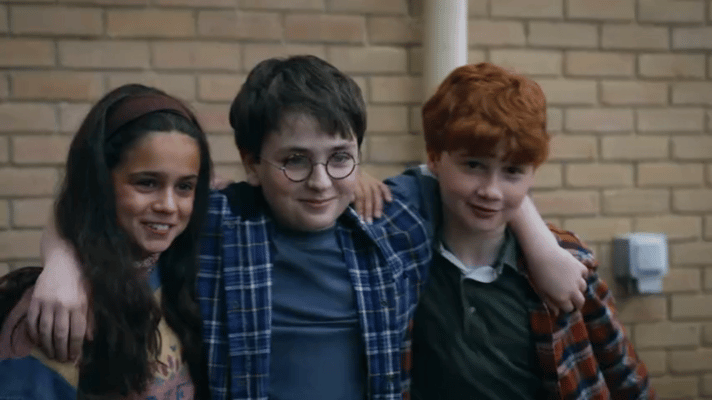 哈利波特剧版哈利波特 图中,应该是新版《哈利波特》三小只最初试镜完后造型——多米