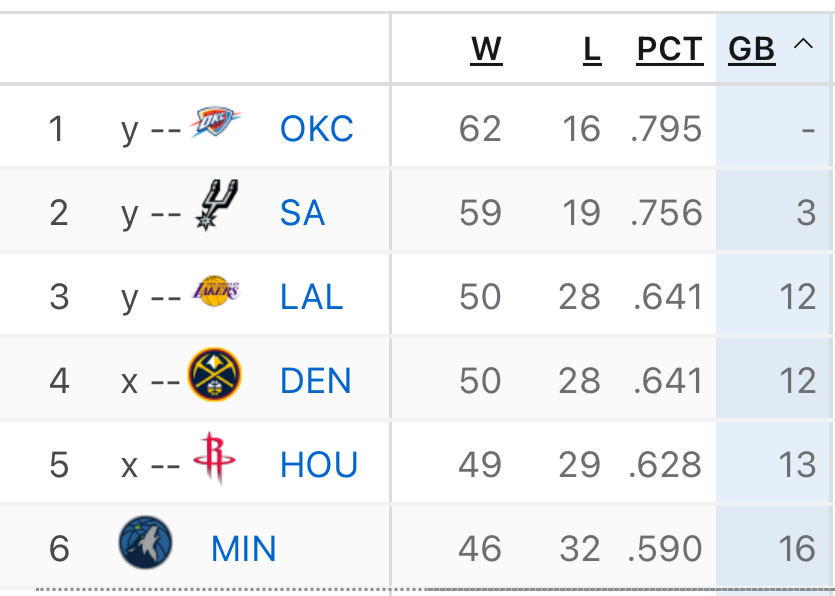 火箭和湖人只差1个胜场!
