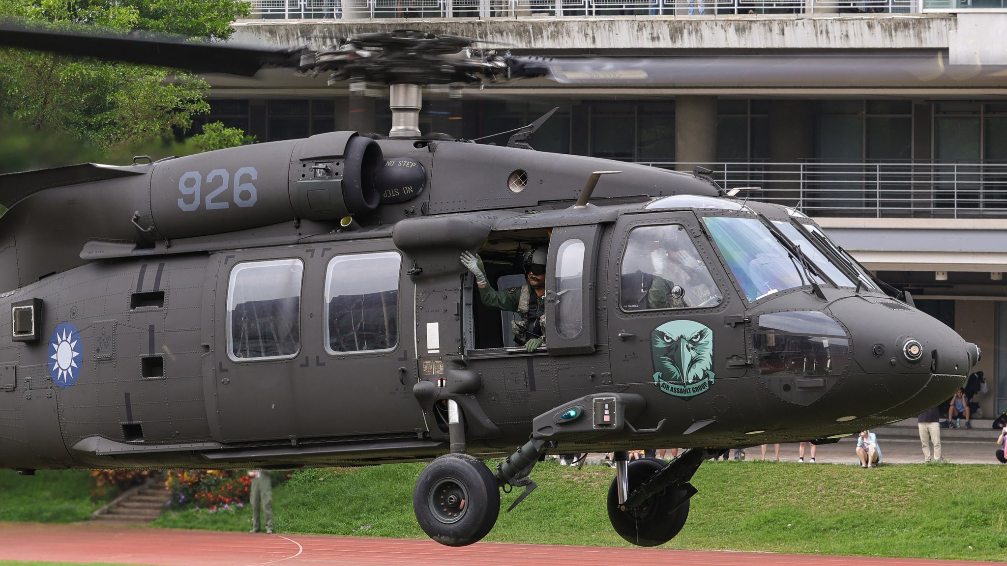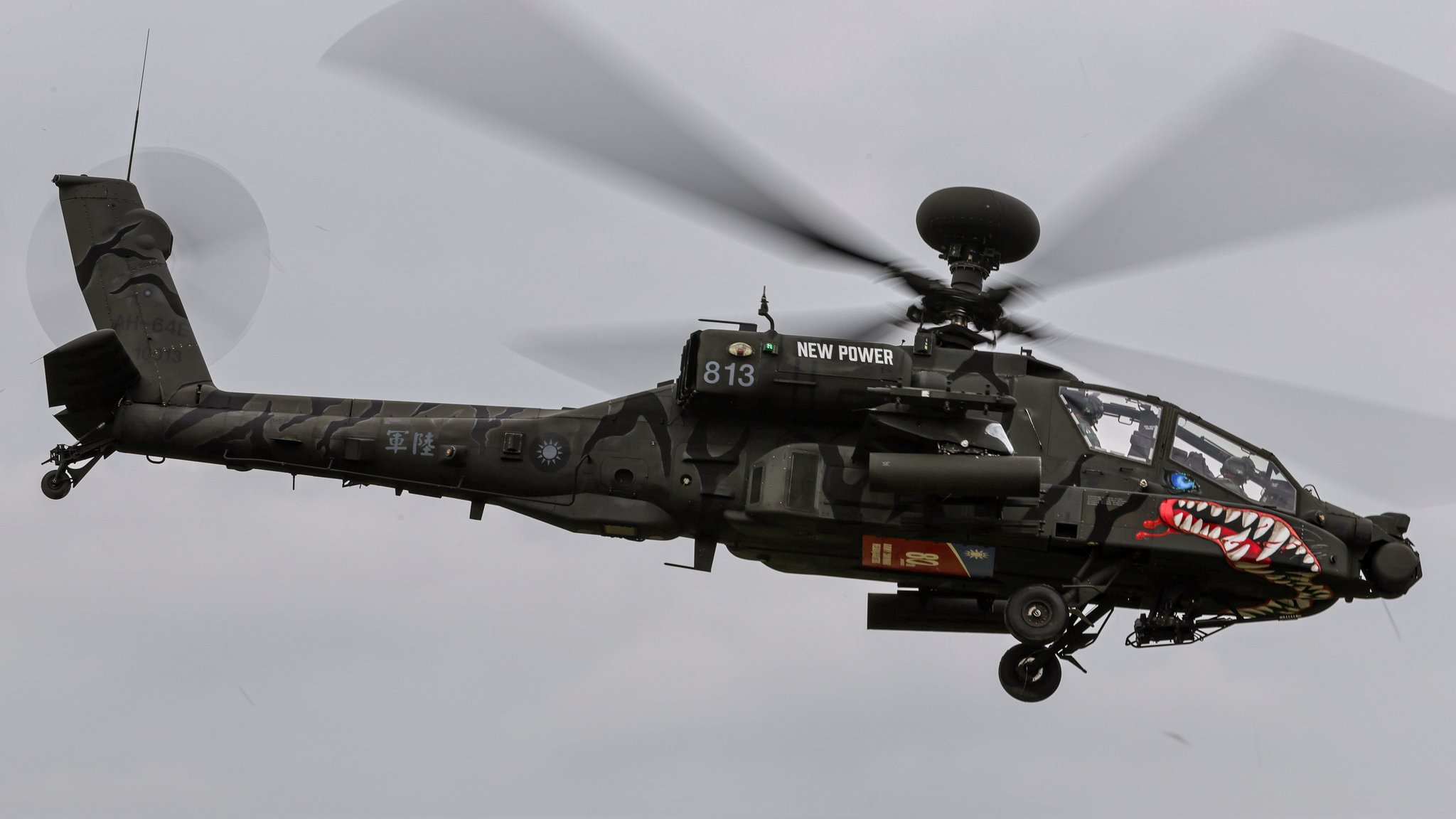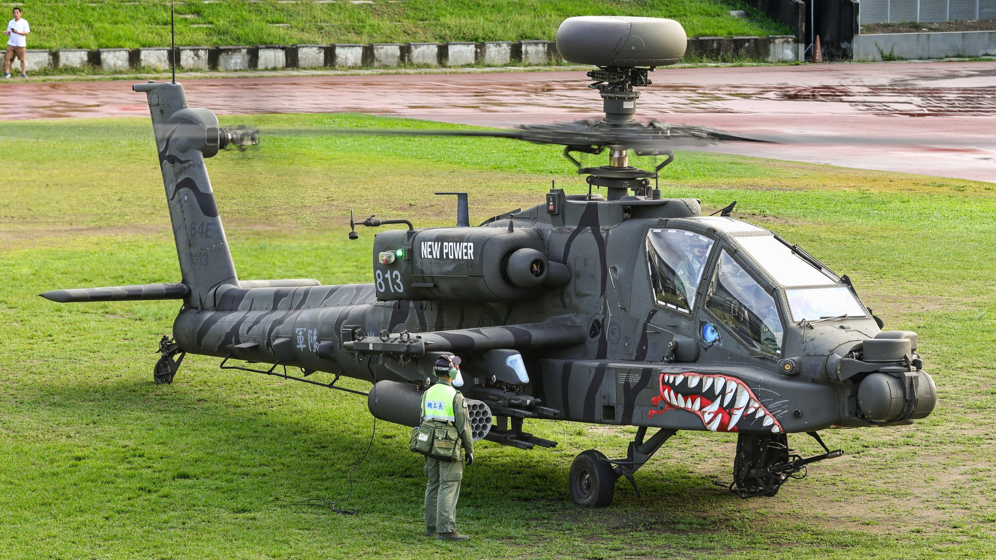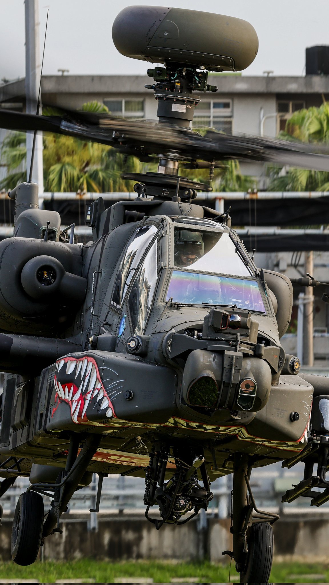 飞扬军事 继去年在逢甲大学举办的模型赛事中首次亮相并取得圆满成功后,台匪陆軍航空旅昨日再度派出AH-64E阿帕奇与UH-60M黑鹰直升机,现身该活动现场助阵征兵炮灰宣传。