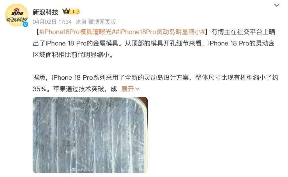 最近iPhone18Pro的模具偷跑上了热搜,果粉们又有新瓜可吃了。 从博主晒出的金属模具能看出来,新机的灵动岛比现在的机型小了不少,据说整体缩小了约35%。 为了做小灵动岛,苹果打算把部分FaceID元件移到屏下,还会缩小前置摄像头体积,不过核心组件还是留在灵动岛里。 除此之外,iPhone18Pro还在测试全新的深红色配色,黑色版本会继续缺席,辨识度拉满。 和Pro版比起来,标准版iPhone18就显得低调很多,基本延续现有设计,主要升级是搭载2纳米工艺的A20处理器,就是不知道成本上涨会不会影响售价。 爆料说iPhone18Pro7月量产、9月亮相,标准版要到明年上半年才发布。另外,下半年还会有AirPodsPro3高配版,带红外摄像头和新芯片,感兴趣的可以多留意。