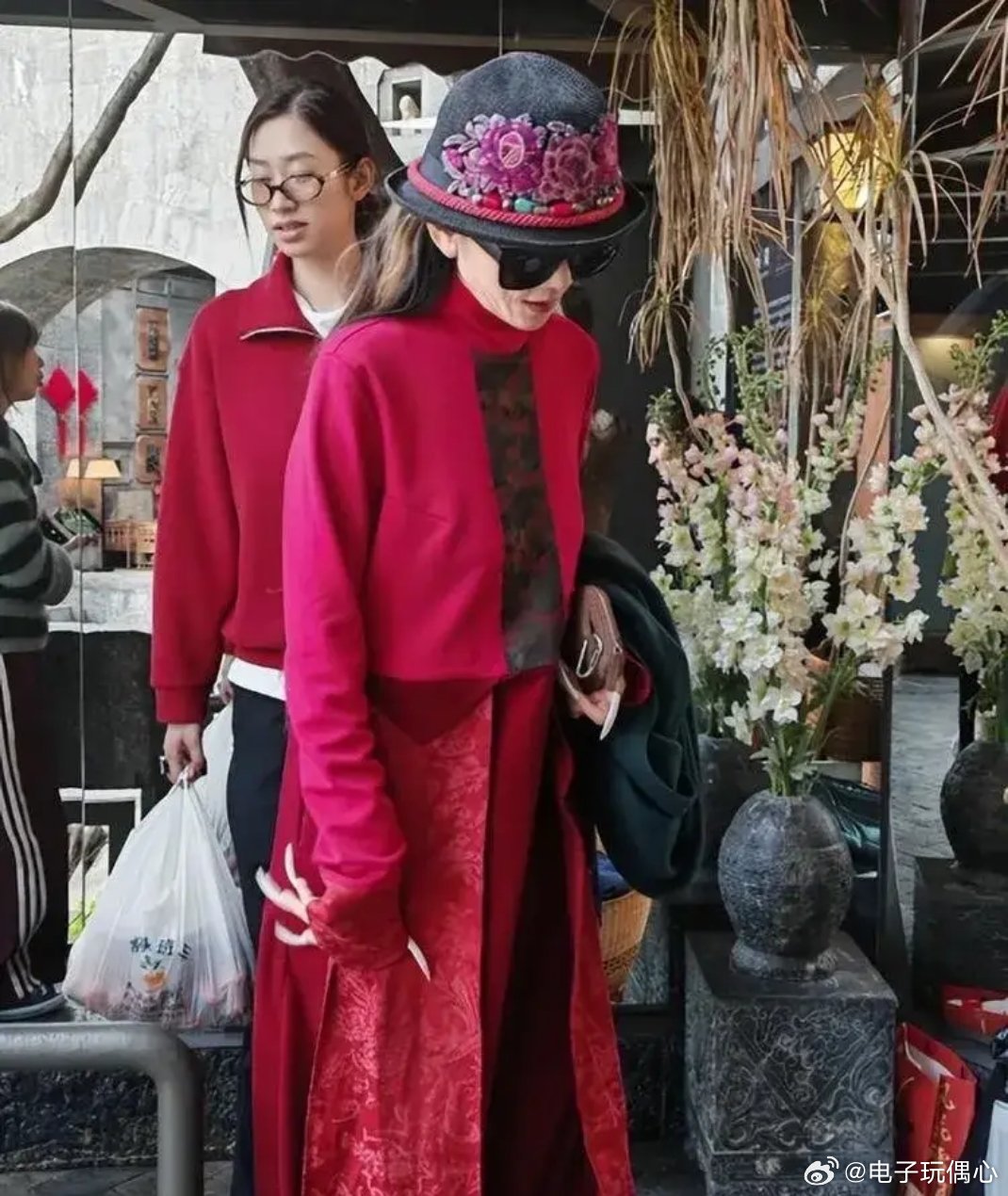 杨丽萍被偶遇,纯素颜下巴叠出5层褶,原生指甲长又白看着很粗糙