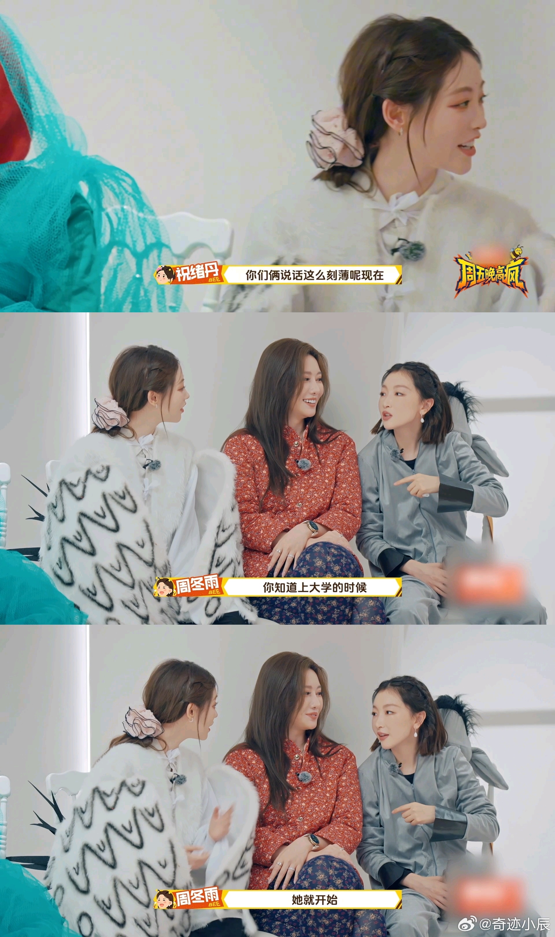 祝绪丹问吴优怎么增肥10斤 祝绪丹追着吴优问增肥法,周冬雨补刀引爆笑,三人互怼名场面,周五晚高疯 这综艺也太欢乐了!