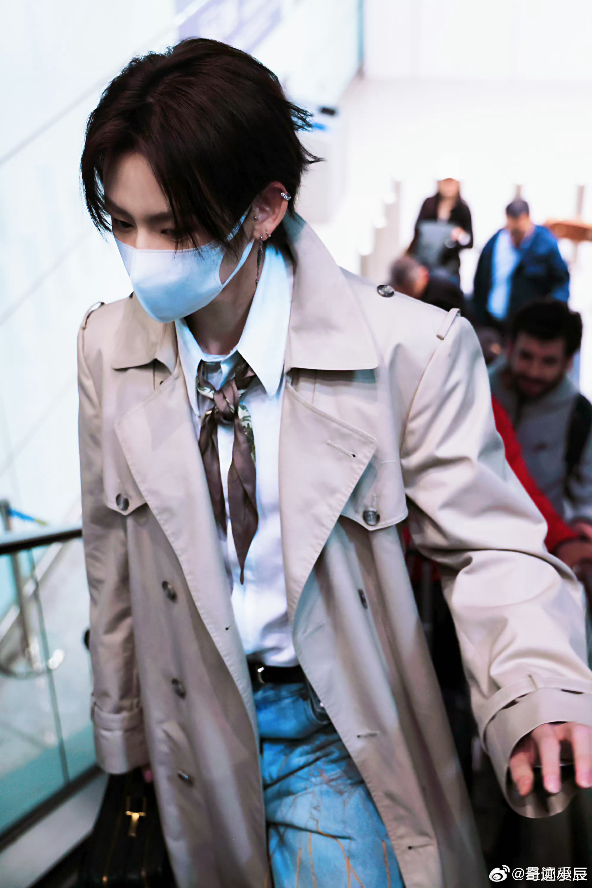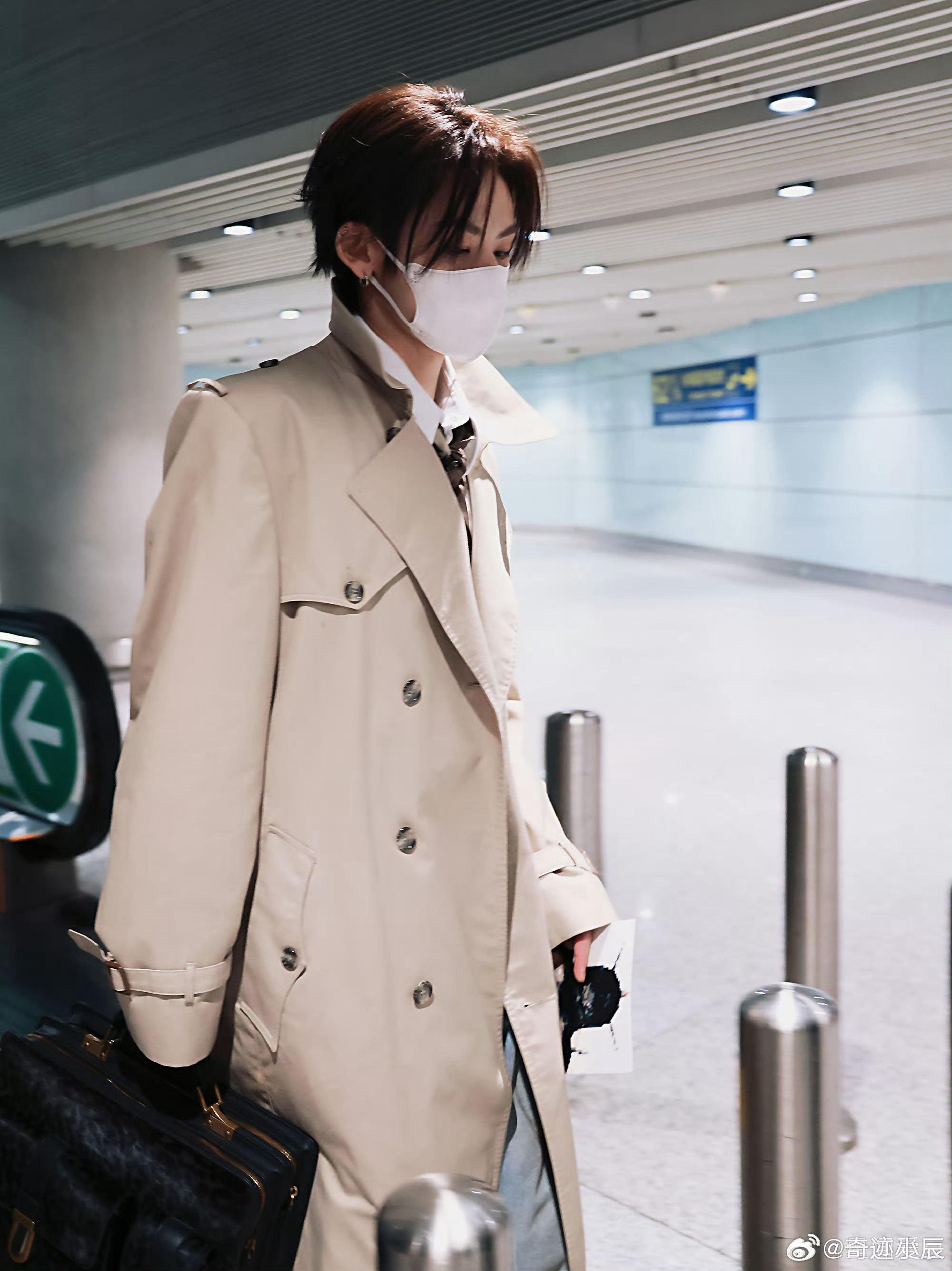 小鬼路透机场变秀场小鬼机场造型鲨疯全场,风衣衬衫+公文包复古又时髦,口罩都遮不住高颜值,每一步都自带气场,直接帅晕路人!