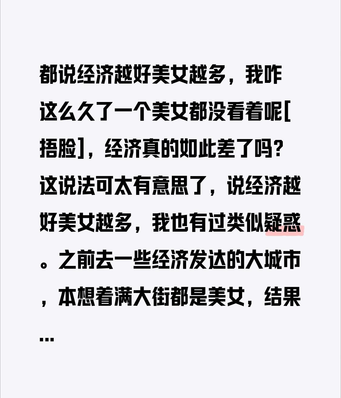 都说经济越好美女越多,我咋这么久了一个美女都没看着呢[捂脸],经济真的如此差了吗