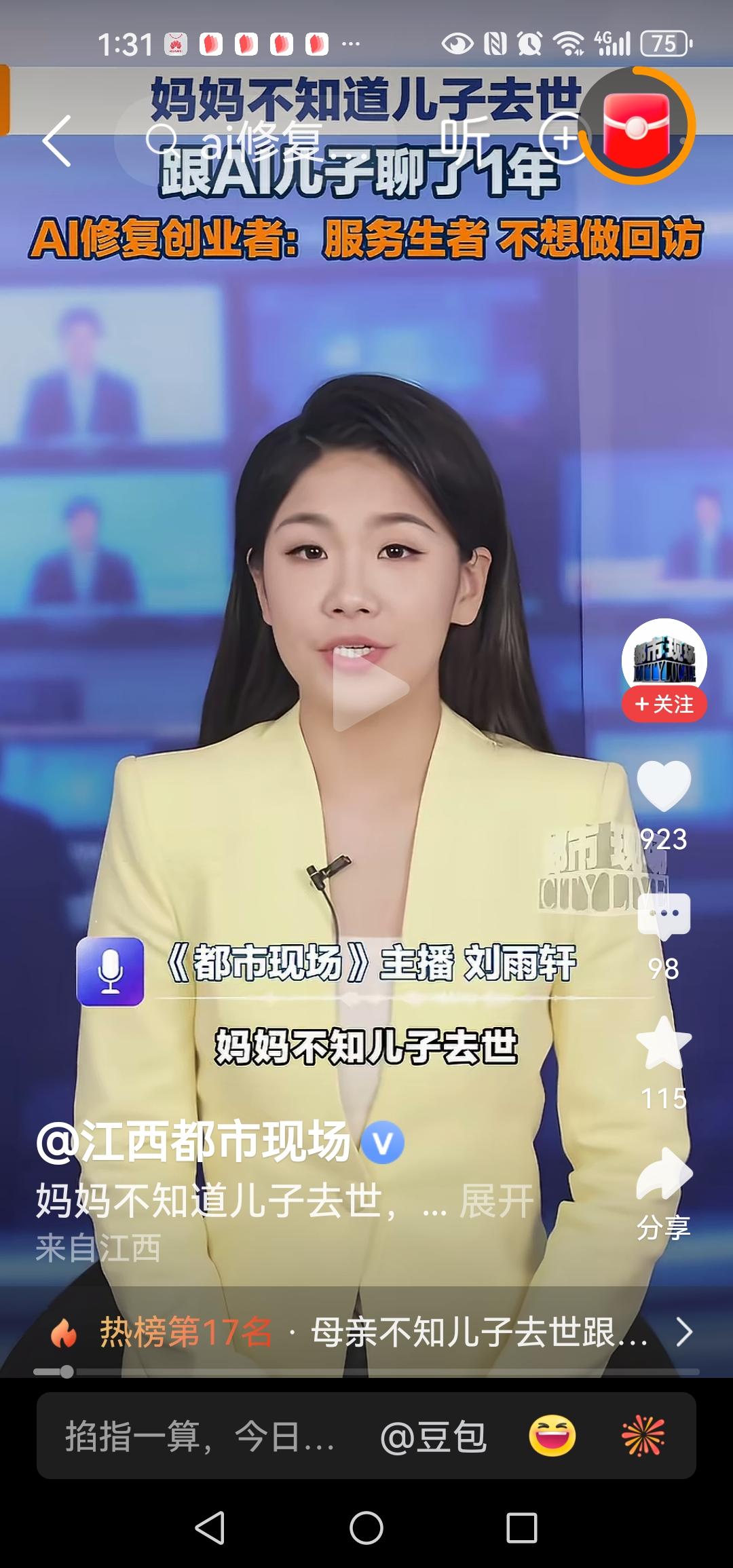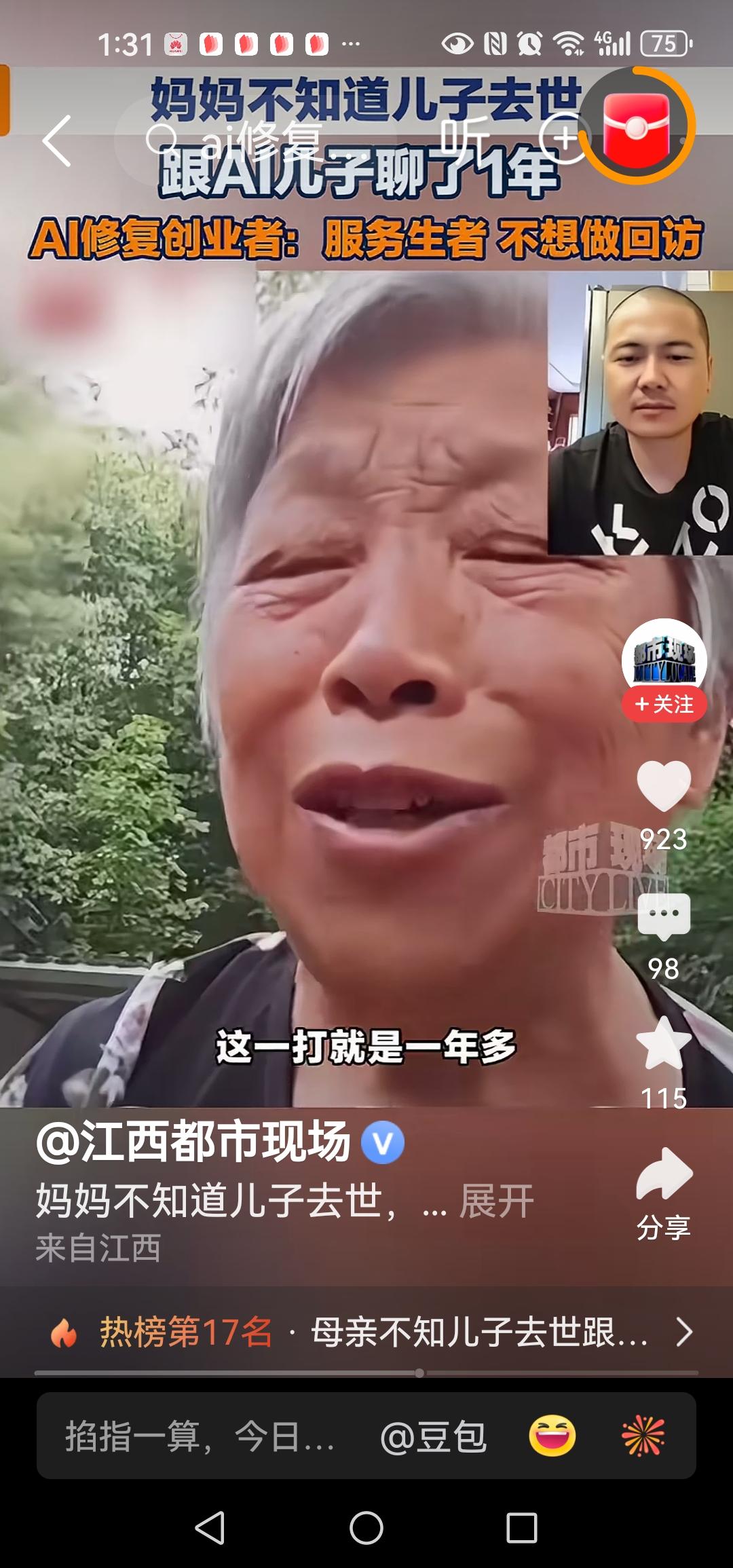 妈妈不知道儿子去世 跟 ai 儿子聊了1年 如果她有一天知道真相,会不会更难受?会更想不通,会更走不出丧子之痛,会不会绝食,会不会自杀? 你以为是暖心其实是残忍,还不如慢慢的让她感知儿子已死,或在一个合适的时间告诉她儿子已经死了。 时间会淡去伤痛,而不是一直让她活在伤痛之中,活在欺骗之中? 用这种方式一直欺骗到她离开人世的那一天?这也好,可中途她知道了呢?岂不痛上加痛? 一年半载瞒着,二年三年五年甚至更久也一直瞒着吗?瞒得住吗?ai死去的亲人,对活着的知情的不知情的亲人都是一种折磨?