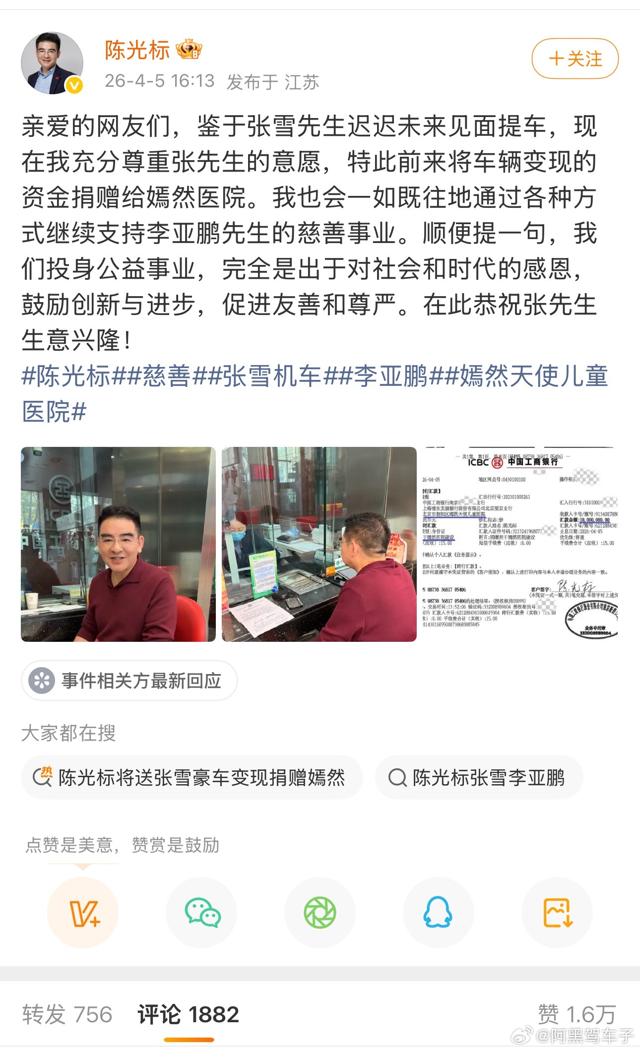 张雪巧施激将,光标弃车保帅陈光标将送张雪豪车变现捐赠嫣然