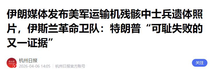 在特朗普宣布营救飞行员任务成功之后,伊朗第一时间公布了一张飞机残骸照片,其中包含一名美军士兵的头骨。 事情的起因要从4月3日说起,当天凌晨,美军一架F-15E双座战斗机偷偷闯入伊朗科吉卢耶-博韦艾哈迈德省上空,刚进入伊朗领空就被伊朗的“霍尔达德-15”防空导弹精准锁定,一枚导弹破空而出,直接命中机身,战机瞬间失控,拖着浓烟坠向当地山脉。 机上的两名飞行员在千钧一发之际弹射逃生,可两人的命运却截然不同,前座飞行员落点靠近边境,落地后迅速激活加密求生信标,美军反应很快,数小时内就派出救援直升机,在战机护航下将其救走。 而后座的武器系统官则被气流抛向伊朗腹地,落点深入境内超过200公里,扎进了地形复杂的扎格罗斯山脉核心地带,这里海拔高、地形险峻,成了他的藏身之地,也成了伊朗布下的“围点打援”陷阱的核心区域。 伊朗从击落战机的那一刻起,就已经做好了万全准备,他们清楚美军的底线是绝不抛弃任何一名士兵,所以把这名落在腹地的飞行员当成了诱饵,布下天罗地网。 伊朗革命卫队精锐、巴斯基民兵和当地执法部队第一时间全员出动,封锁了山区所有进出通道,沿着坠机点向外层层布防,形成多层包围圈。 同时,伊朗国家电视台还滚动播报悬赏通告,开出6万欧元高价,动员当地村民和部族民兵进山搜捕,甚至打出“看到就开枪”的强硬字幕,把整个扎格罗斯山区变成了“禁飞区”和“搜捕区”,搜捕人员漫山遍野,最近时距离飞行员藏身地仅有800米,步步紧逼。 这名落在腹地的飞行员落地时脚踝扭伤、脊椎受轻伤,身上只有一把手枪和简易求生装备,他不敢有丝毫停留,强忍伤痛远离坠机点,专挑陡峭山脊和岩石裂缝躲藏,每过几小时就小心翼翼激活一次加密信标,既保证能和美军指挥部联系,又避免信号持续发射被伊朗电子战部队定位干扰,就这样在零下的山区寒夜里,靠着少量补给和顽强意志,在伊朗层层搜捕中硬撑了近48小时。 美军为了救回这名飞行员,启动了最高级别的救援预案,派出了包括C-130运输机在内的庞大机群,还有数百名三角洲特种部队精锐,在4月5日凌晨发动了救援行动。救援过程中,美军和伊朗地面部队爆发激烈交火,尽管美军最终突破伊朗的封锁线,救走了这名飞行员,但也付出了不小的代价。 伊朗方面明确表示,他们击落了美军一架C-130运输机和两架黑鹰直升机,而美军则辩解称,有两架C-130运输机因故障被困,为防止泄密只能自行炸毁,双方各执一词,但伊朗公布的残骸照片,却给出了最直接的证据。 特朗普在4日就迫不及待地宣布营救任务成功,宣称救出了两名机组人员,没有任何美方人员伤亡,试图以此彰显美国的军事能力,稳住中东驻军的士气。 可就在他宣布成功后不久,当地时间4月5日,伊朗迈赫尔通讯社就援引伊朗伊斯兰革命卫队公共关系部的消息,公布了那张C-130运输机残骸照片,明确指出残骸中发现了一名美军士兵的遗体,也就是照片中那具头骨,并且强调这具遗体由伊朗革命卫队控制。 伊朗方面公开宣称,这具遗体可能就是美方试图营救的那名飞行员,只是他最终没能成功离开伊朗,没能被美军救走。伊朗伊斯兰革命卫队还表示,这具遗体的发现,是特朗普“可耻失败的又一证据”,直接戳破了美方“营救成功、无人员伤亡”的谎言。 伊朗伊斯兰议会议长卡利巴夫也在社交媒体上发布了这张照片,并评论称,如果美国再取得这样的“胜利”,就将“彻底被毁灭”,以此嘲讽美方的虚假宣传。 面对伊朗公布的照片和表态,美方并没有直接回应头骨遗体的问题,只是在5日补充说,被救回的第二名机组人员身受重伤,已经被送往科威特接受治疗,试图淡化这件事带来的影响。 但事实摆在眼前,伊朗掌握着这具美军士兵的遗体,也掌握着美军飞机被击落的残骸证据,无论美方如何辩解,都无法掩盖营救行动中出现人员伤亡、装备损失的事实。 这件事看似只是一次营救行动的争议,实则是美伊之间战略博弈的又一次激烈体现。特朗普急于宣布营救成功,本质上是想彰显美国的霸权实力,向中东地区展示美军的作战能力;而伊朗第一时间公布残骸照片和头骨遗体,就是要戳破美方的谎言,告诉世界美军的真实实力,同时展示伊朗捍卫自身主权的决心和能力。 伊朗很清楚,美军贸然闯入自己的领空,本身就是挑衅行为,他们用实际行动证明,伊朗有能力应对任何外来挑衅,不会让美军在自己的地盘上为所欲为。