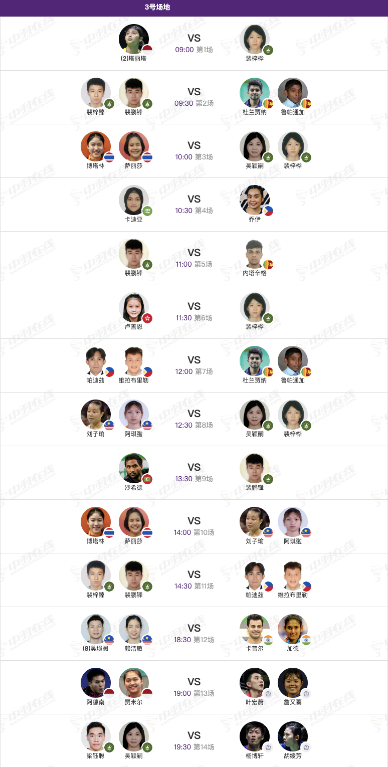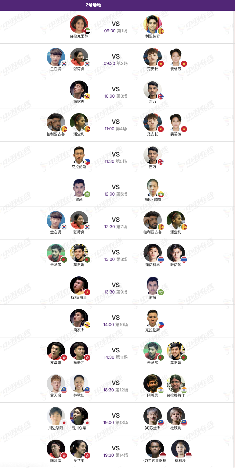 2026年羽毛球亚锦赛 4月7日小组赛➕混双首轮赛程,早上9点开赛: