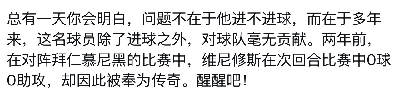 sosok17 2 2026-04-07 13:36 懂球的皇马球迷估计没几个会喜欢他,但讨厌说不上,只是纯粹从球队的阵型踢法来说不想看见他而已。姆巴佩能力算强,但基本上就是速度,其他的都不咋地。所以反击中或者他作用挺大的,但其他时候几乎没啥贡献。而且皇马根本不缺左边锋,应该是不管是小熊还是李哥,作用都比姆巴佩大,因为姆巴佩真的就是速度优势多那么一点而已,需要技术去突破和渗透的时候几乎帮不上,而且他不管是踢中锋还是边锋,都对整个前场其他球员造成位置和功能的伤害,导致前场几乎全部踢得难受。因为他经常猥琐在左前腰位置等机会冲禁区去打门,但技术又不行,一旦没空间但球友把球传他,他经常会在那里丢球或者只能回传,对球队进攻非但没帮助还时不时成为对手的反击起点。所以强强对话皇马在姆巴佩存在的情况下经常被虐[哭笑不得]虽然他有数据,但问题就在于没有他其他球员一样有数据,而且踢得流畅有立体感,变化多,哪怕输球也不至于惨败。这就是最本质的问题。姆巴佩从出道到现在,10年都没啥进步,名气脾气倒是涨了不少,这样的球员作为核心建队注定了球队的上限很难到达巅峰,这就是球迷不认可的地方