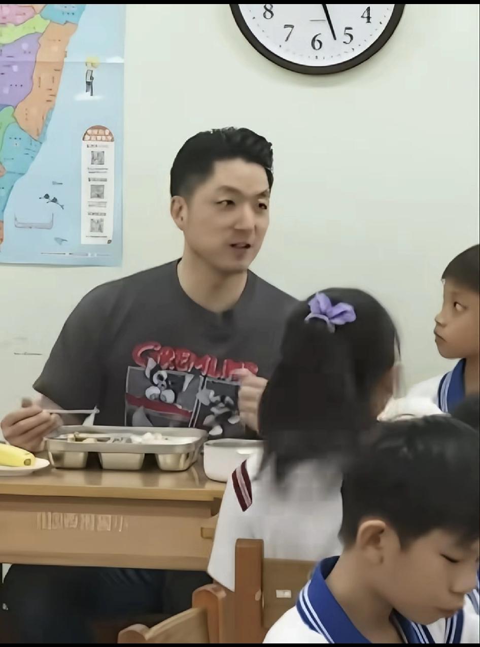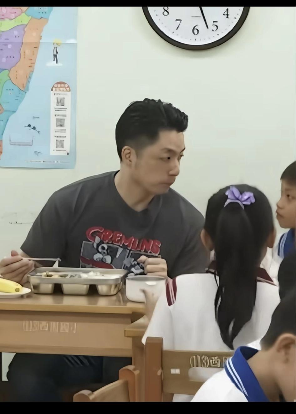 台北儿童免费营养午餐推广人市长蒋万安和小朋友一起l同进餐。