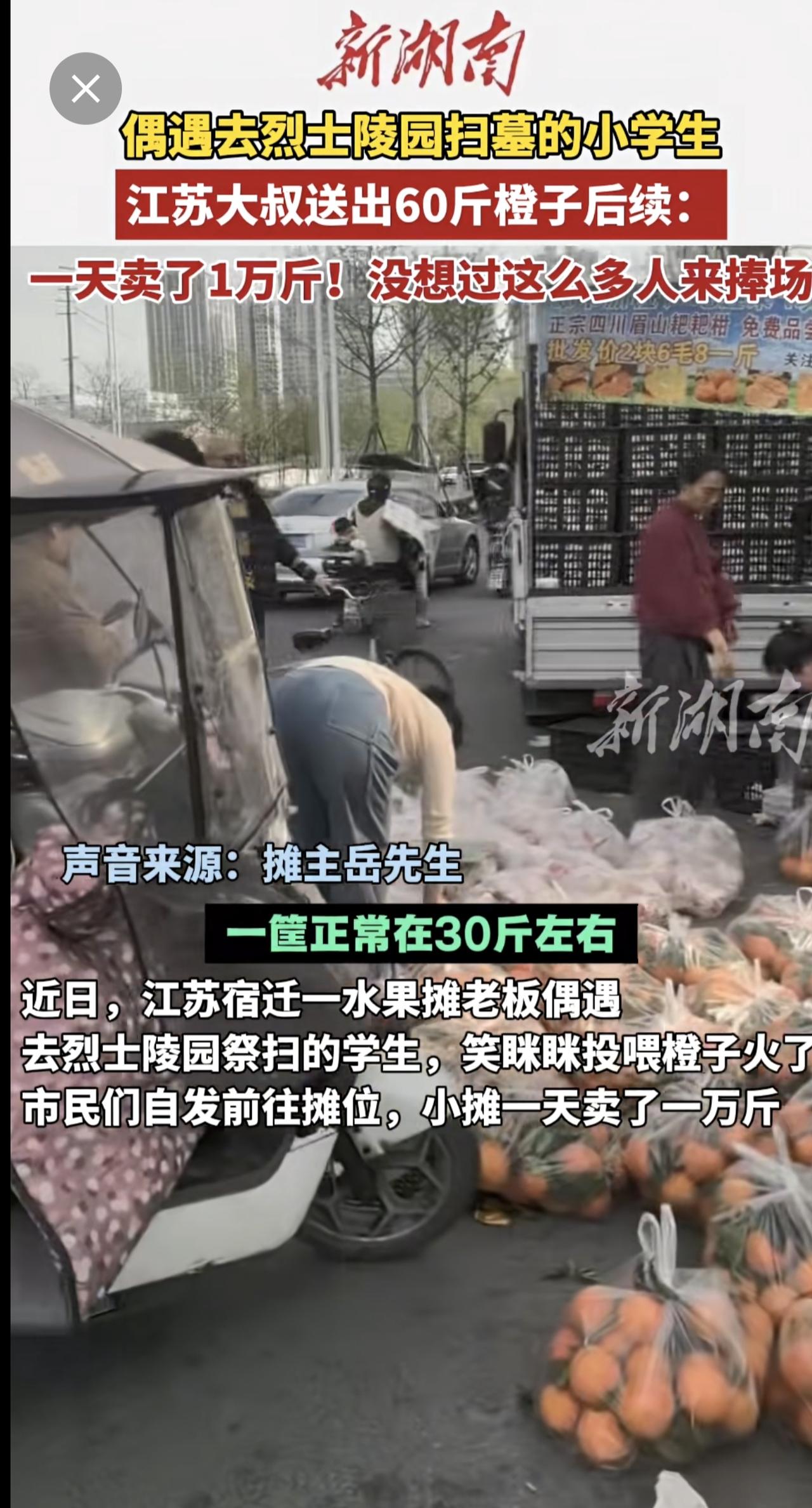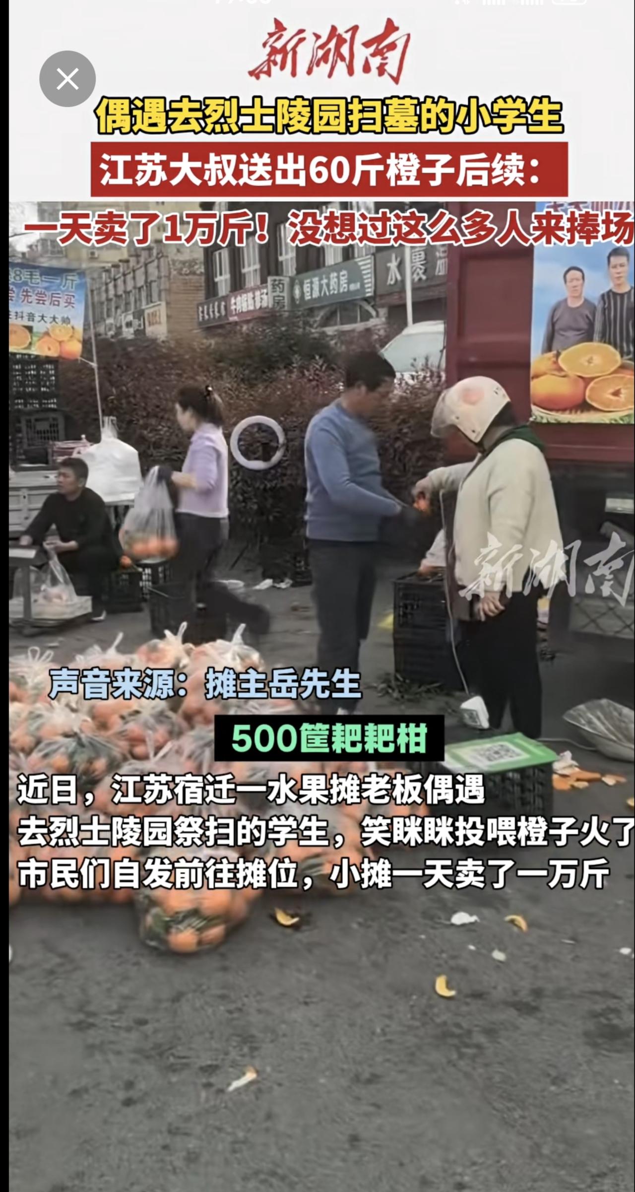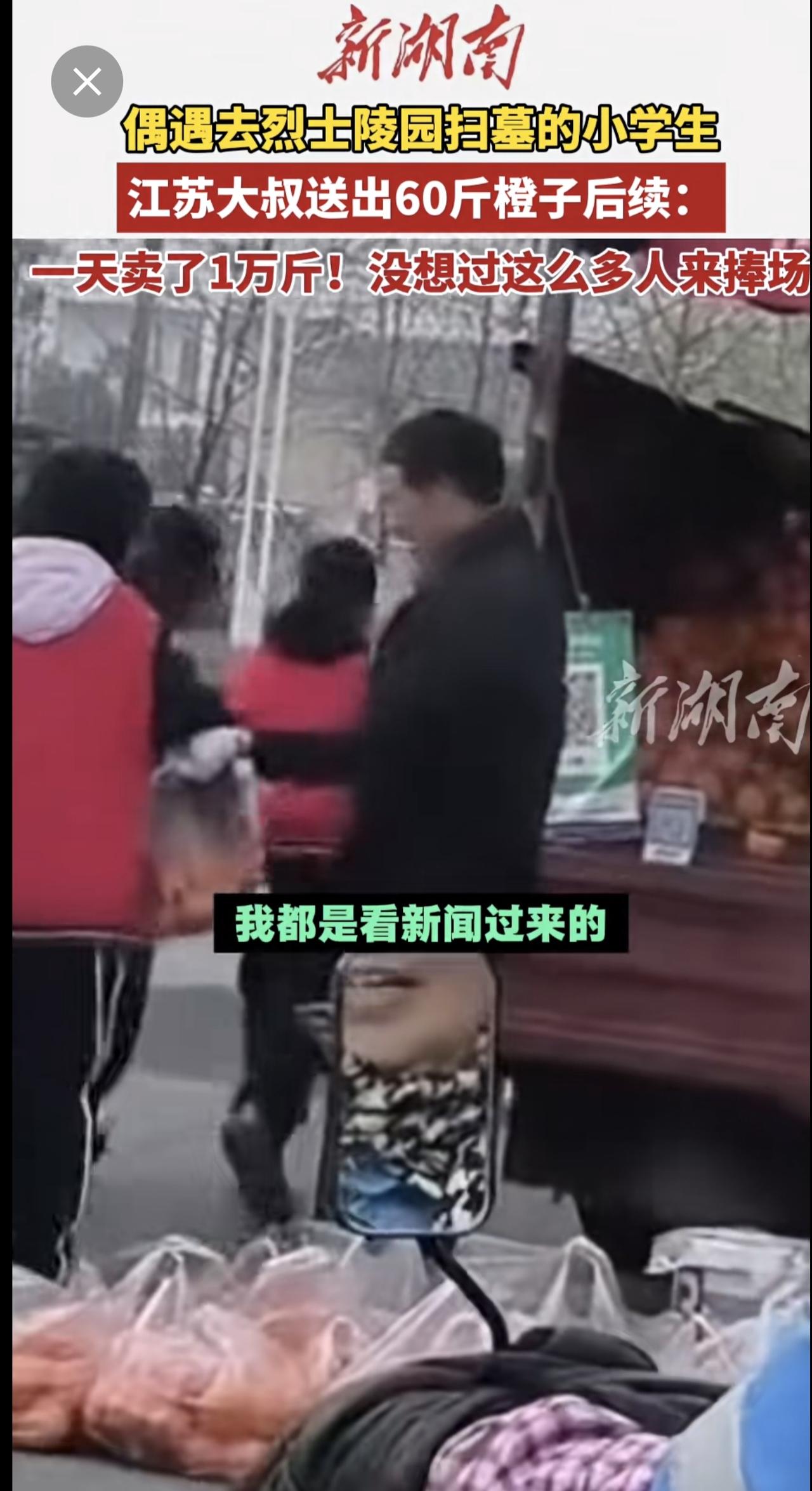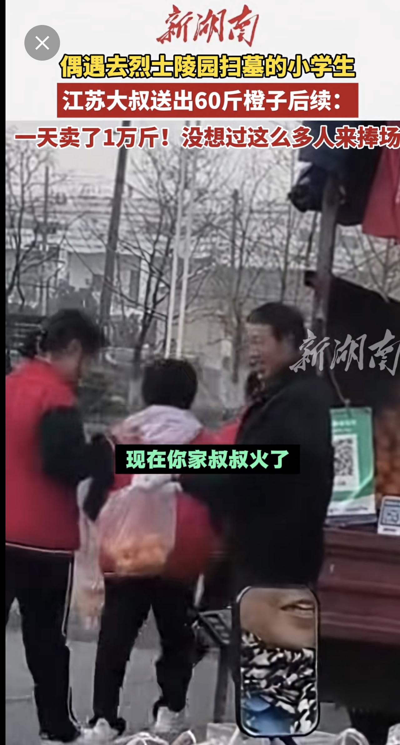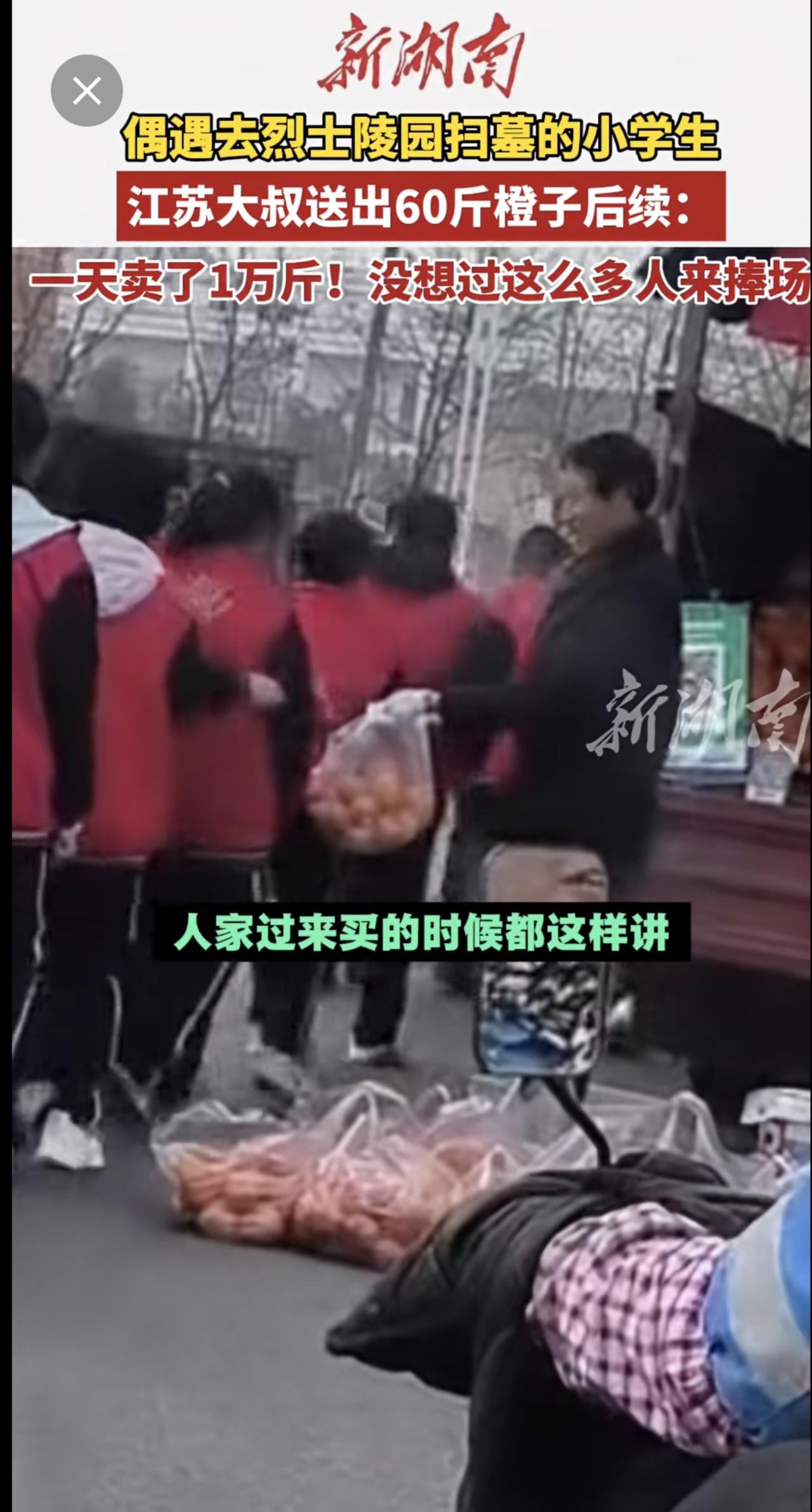 偶遇去烈士陵园扫墓的小学生,江苏大叔送出60斤橙子后续:一天卖了1万斤!