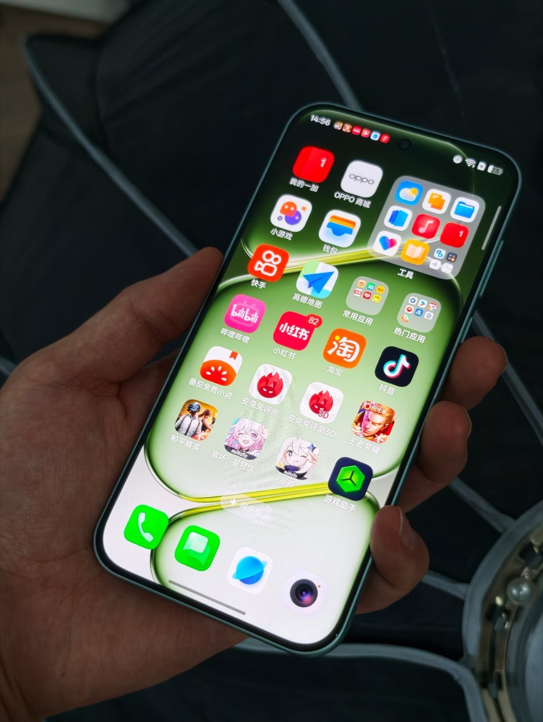 在不同的光线下,一加Turbo 6的青色视觉上也不一样,但因为用的是低饱和度的颜色,所以整体的清爽质感很足,我个人也很中意这种比较浅的颜色,哪怕是中端机型,也能做出高级感。比起真我乐于给设计做加法,一加明显更倾向于给设计做减法