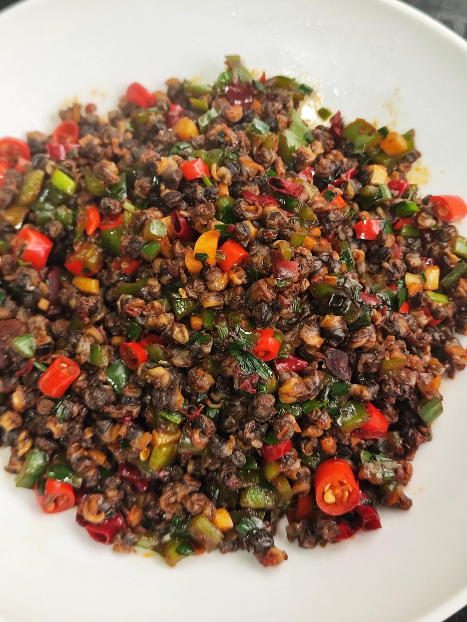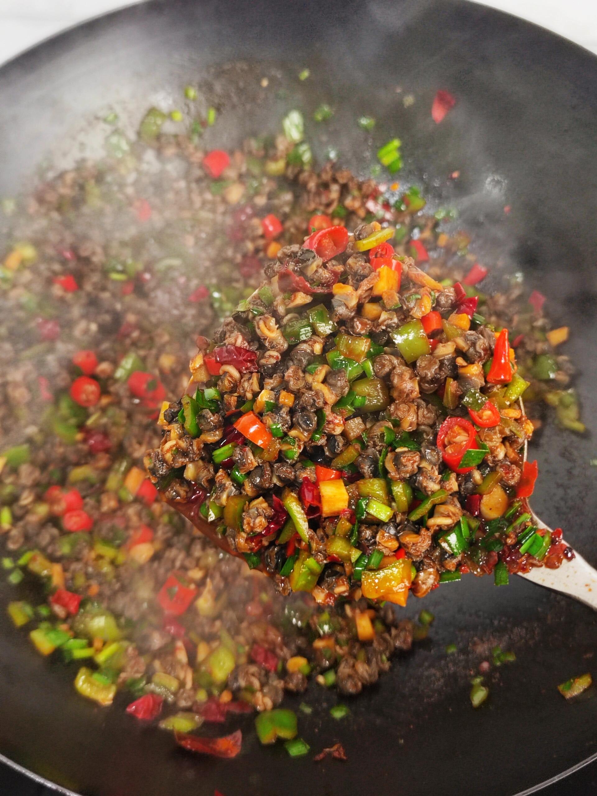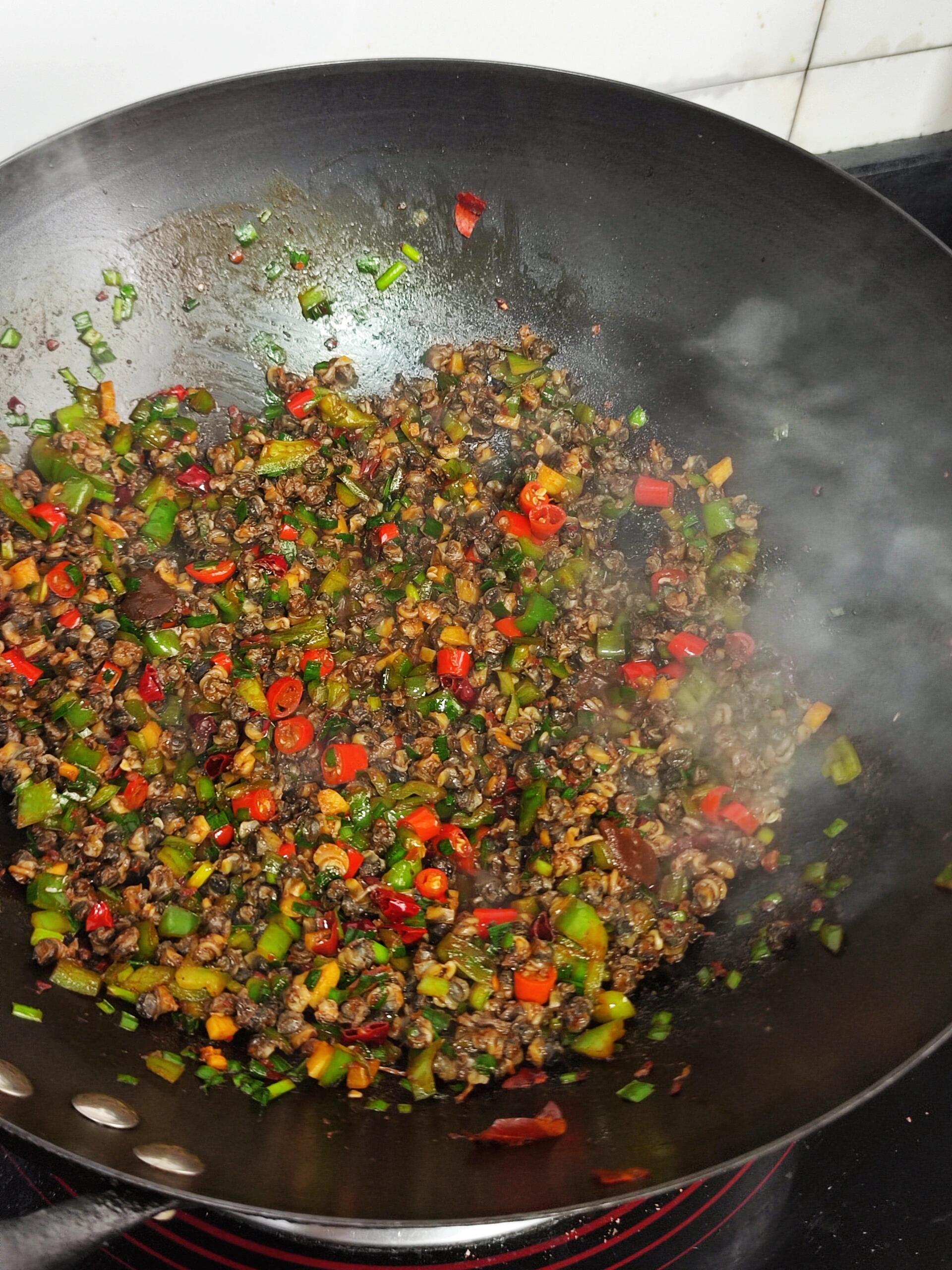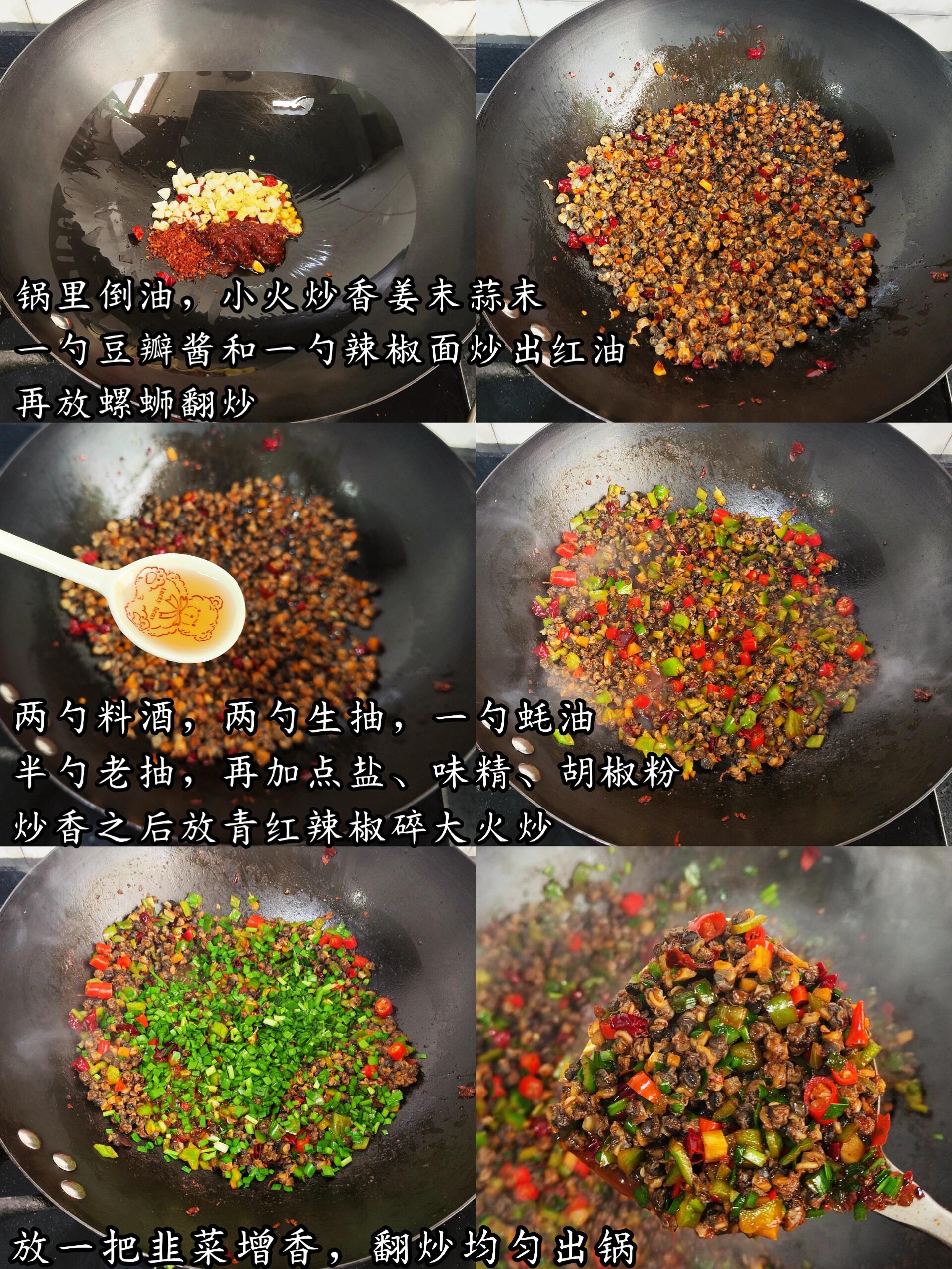 谁懂啊!香辣爆炒螺蛳🌶️弹牙入味,配饭直接封神 家人们!今天解锁神仙下饭菜——香辣爆炒螺蛳肉,香到直跺脚[赞R] 螺丝肉吸饱了鲜辣酱汁,辣味十足还不呛喉,咬一口弹牙又有嚼劲,越嚼越香[哇R] 青红辣椒的鲜爽,裹着韭菜的清香🌿,鲜辣中带着一丝清甜,一口下去幸福感直接拉满[烟花R],根本停不下来! 没有复杂工序,家常做法,新手也能零失败,几分钟就能上桌,妥妥的下饭神器,配米饭能炫两大碗! 🛒 准备食材(按需准备,不踩雷): 螺丝肉|韭菜|青红辣椒|姜末|蒜末|辣椒面 制作步骤(记好关键,不糊底、更入味): 1、起锅倒油,油热后放入姜末、蒜末、1勺豆瓣酱、适量辣椒面,转小火慢慢炒,炒出浓郁红油(划重点!火候一定要小,不然容易糊底,影响口感和香味) 2、红油炒出来后,倒入处理干净的螺蛳肉,开大火快速翻炒,加入两勺料酒去腥,再放两勺生抽提鲜、一勺蚝油增香、半勺老抽上色,加适量盐、味精和白胡椒粉,翻炒均匀,让每颗螺丝肉都裹上调料。 3、放入切好的青红辣椒圈,继续大火翻炒,炒出辣椒的鲜爽香味,最后撒一把韭菜末,保持大火快速翻炒30秒,看到韭菜变软、吸满香味,就可以直接出锅啦! 这样炒出来的螺丝肉,香辣入味、嚼劲十足,没有一点腥味,韭菜的清香和辣椒的鲜辣完美融合,香到舔盘~ 配上一碗热腾腾的米饭,每一口都超满足,妥妥的人间美味,不管是当下饭菜还是下酒菜,都巨合适,赶紧动手试试!