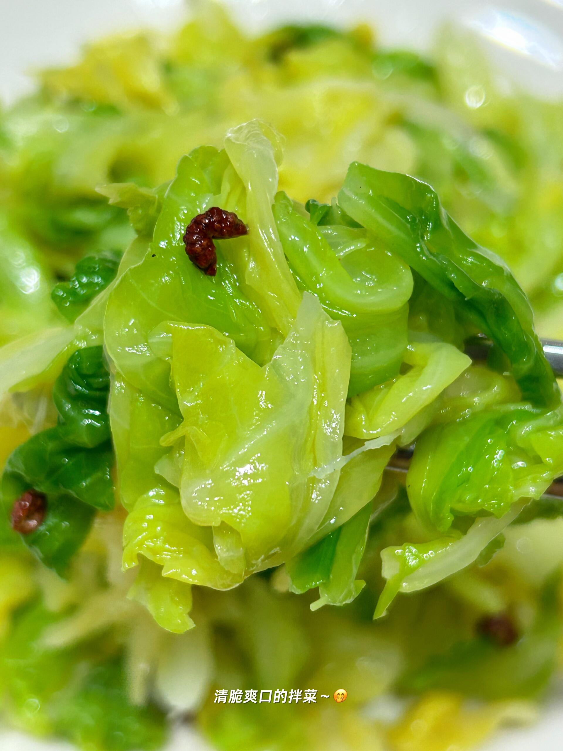 沙县同款拌菜,低卡清爽,不油不腻巨开胃 家人们!今天复刻了沙县经典拌菜,一口就爱上,完全不输店里的味道~ 口感脆嫩清爽,没有多余的油脂,不油不腻,咸鲜入味,每一口都清爽解腻,低脂无负担,减脂期也能放心炫! 清淡又入味,越嚼越香,不管是当凉菜、下饭菜,还是解腻小食,都巨合适,做法简单到离谱,新手零失败,几分钟就能上桌! 沙县拌菜(家常复刻版) 准备食材(简单4样,随手就能凑齐): 包菜、花椒、盐、味精、食用油 详细做法,跟着做不翻车: 1️⃣ 包菜洗净,用手撕碎成小块(手撕的比刀切的更入味,口感更脆嫩),备用。 2️⃣ 锅中加水烧开,加少许盐和食用油(加这两样,包菜颜色更翠绿,还能提前入底味),放入包菜烫30秒~1分钟,看到包菜变软、颜色变亮,立刻捞出,过一遍凉水,然后彻底挤干水分,放入盘中备用(挤干水分才更入味,不发水)。 3️⃣ 另起一口小锅,倒入少许冷油,放入花椒,转小火慢慢炸,炸出花椒的麻香,等到花椒微微变色,立刻将热油泼在包菜上,再加入适量盐和味精,用筷子充分拌匀,让每片包菜都裹满香味,就能直接吃啦! 简单3步,沙县同款拌菜就做好啦✨ 脆嫩清爽,不油不腻,低脂又美味,家常做法,不用复杂调料,随手就能做,赶紧动手试试,解锁沙县平替凉菜!