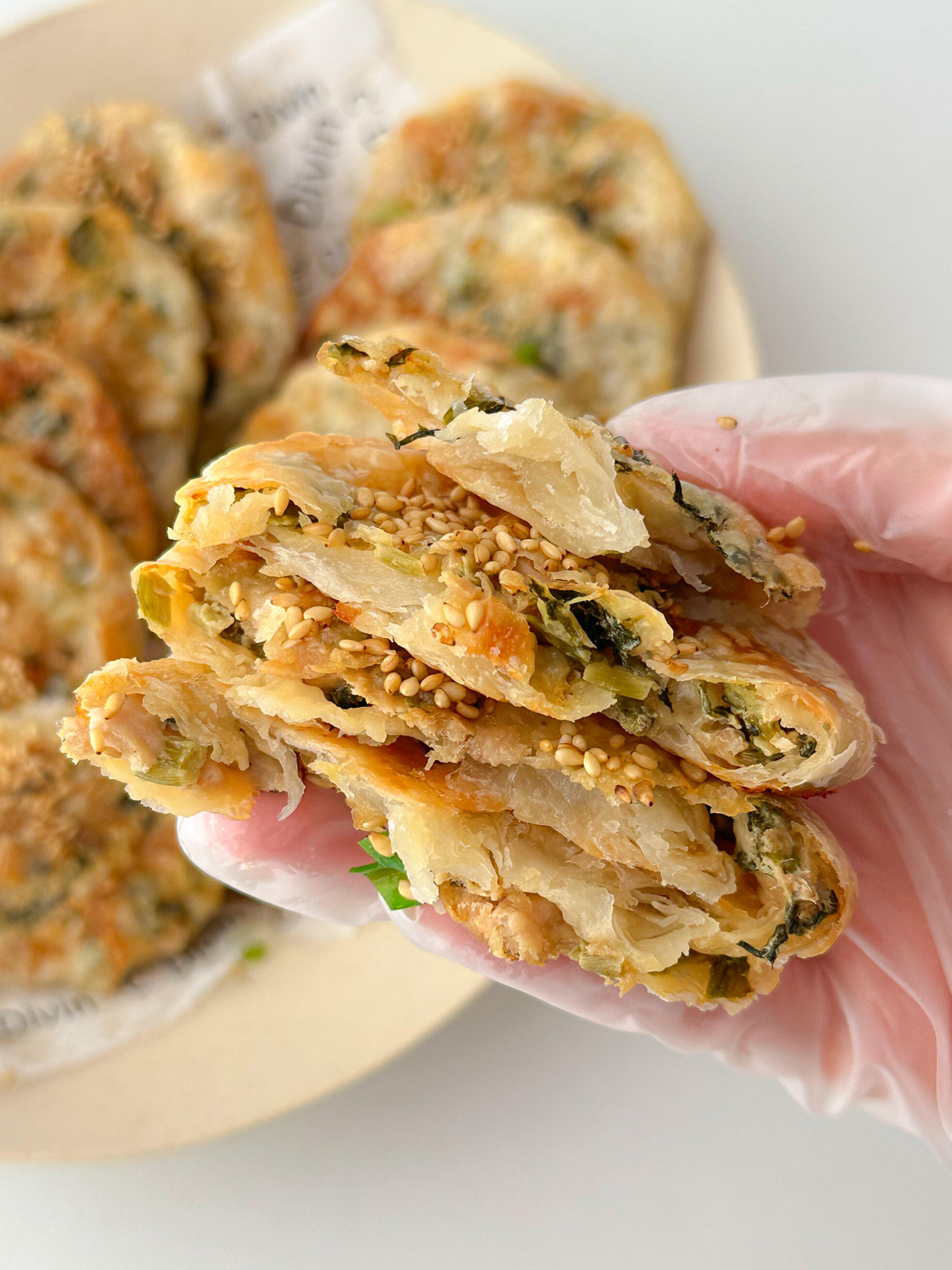免揉面雪菜肉末酥饼🔥外酥掉渣,新手零失败 家人们谁懂啊😭 挖到宝了!这款免揉面雪菜肉末酥饼,一口酥脆掉渣,香到直跺脚,完全不用揉面发面,厨房小白也能轻松拿捏! 外皮金黄酥脆,咬一口直接掉渣,内里软嫩不柴,雪菜的鲜咸混着肉末的醇香,越嚼越香,搭配得恰到好处,没有多余的油腻感,好吃到停不下来~ 重点是!完全免揉面、不发面,再也不用为揉面发面头疼,手抓饼就是万能神器,有了它做酥饼,几分钟就能搞定,快手又美味,再也不用费时间折腾! 手抓饼真的是yyds,用它做酥饼,省去所有复杂步骤,不用揉面、不用发面,厨房小白也能一次成功,省时又省力,赶紧安排起来! 🛒 准备食材(简单5样,随手就能凑齐,不踩雷): 猪肉末、雪菜、手抓饼、小葱 👩🏻🍳 详细做法,跟着做不翻车: 1️⃣ 猪肉末中加入1勺酱油、少许盐、1勺蚝油,再放入雪菜和切碎的小葱,用筷子充分搅拌均匀,调好馅料备用(馅料提前拌匀,更入味不脱节)。 2️⃣ 手抓饼切成4等份,取一份手抓饼,放上调好的雪菜肉末馅料,像包包子一样包起来,用手轻轻按压扁平,再在表面抹一层薄油,撒上少许芝麻增香。 3️⃣ 烤箱提前预热,上下火200度,放入包好的酥饼,烤20分钟,烤至表面金黄酥脆,就能直接出锅啦! 做好的酥饼,外酥里嫩,雪菜的鲜咸和肉末的醇香完美融合,一口下去超满足,免揉面、快手简单,厨房小白也能轻松复刻,赶紧动手试试~