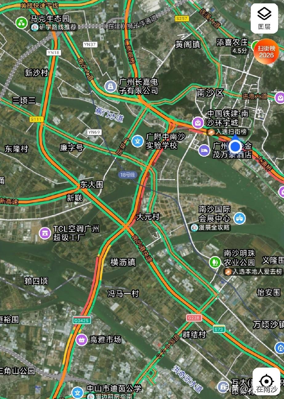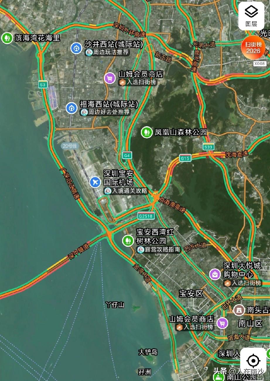 今天你塞在高速了没?连深中通道南沙支线都塞红了。