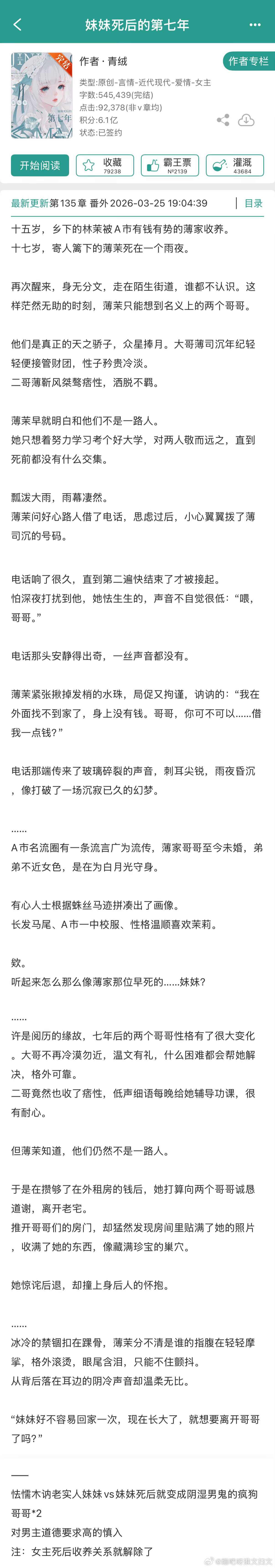 推文 《妹妹死后的第七年》by青绒推荐指数:⭐️⭐️⭐️关键词:现代/伪骨/1v2
