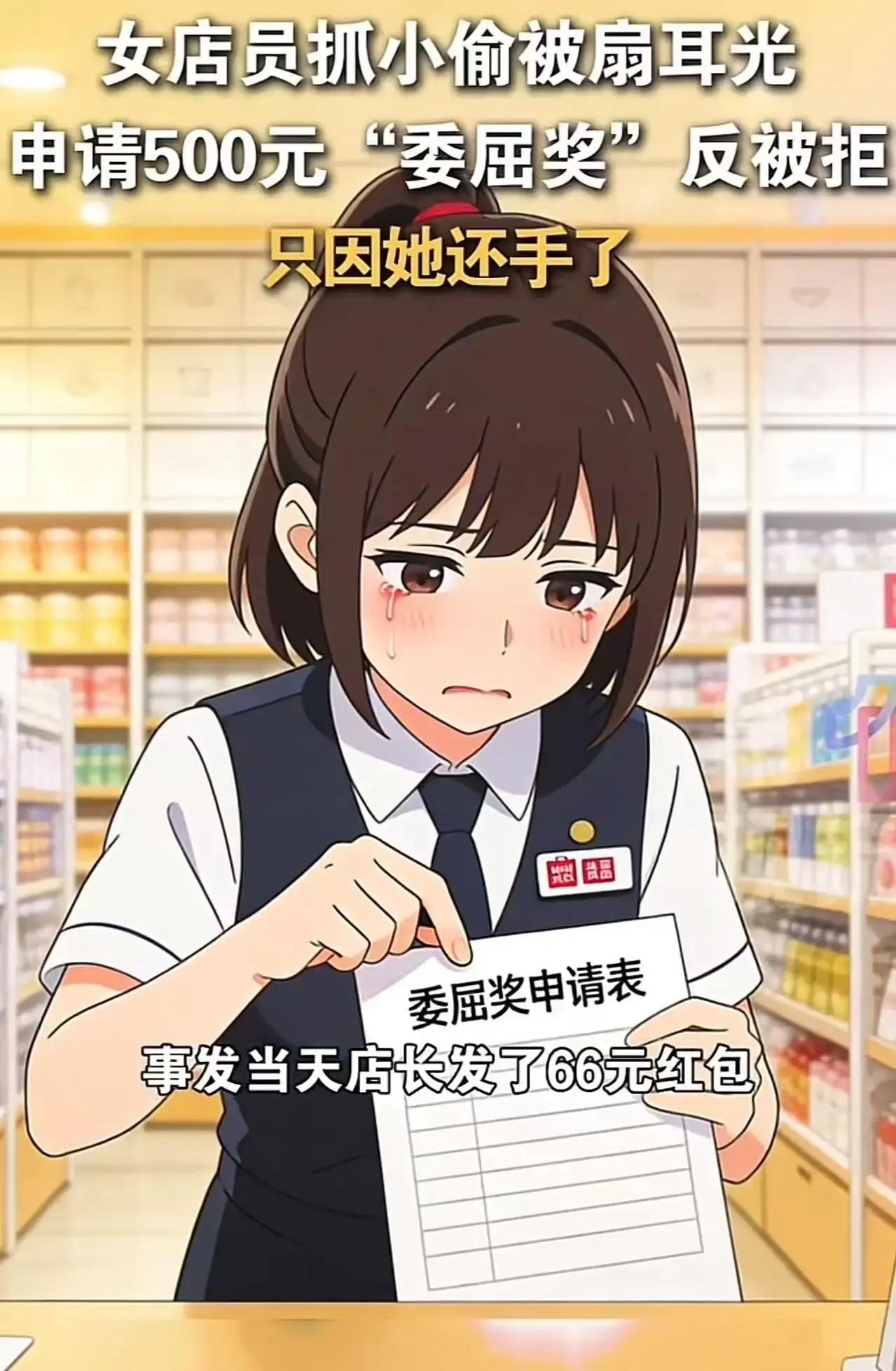 长沙一女子上班时勇抓小偷,反被小偷扇耳光,公司竟因女子还手驳回“委屈奖”,还称小偷为“顾客”,这究竟是怎么回事? 近日,湖南长沙的段女士在上班时,意外发现一名小偷正在行窃,她毫不犹豫地冲上前去,一把抓住了小偷。然而,小偷情急之下,竟然扇了段女士一个耳光。店长得知此事后,觉得段女士非常勇敢,于是向公司申请给她颁发500元的“委屈奖”。但令人意想不到的是,公司竟然驳回了这个申请,理由是段女士也还手了,导致“顾客”同样受到了伤害。段女士对此感到十分困惑:“明明是小偷,怎么成顾客了?”此事一出,网友们纷纷表示不满,评论区瞬间被“公司玩不起”的吐槽淹没。有网友怒斥公司的逻辑荒谬,认为公司是在颠倒黑白,把小偷当成了顾客。还有网友心疼段女士,觉得公司这种做法完全忽视了员工的安全和尊严,是在把“息事宁人”刻进骨子里。 公司此举无疑引发了众怒,员工的安全和尊严岂能如此被轻视?大家对于公司的做法有何看法呢?快来评论区一起讨论,为段女士发声吧!女生偷窃 入店偷窃 同事偷窃