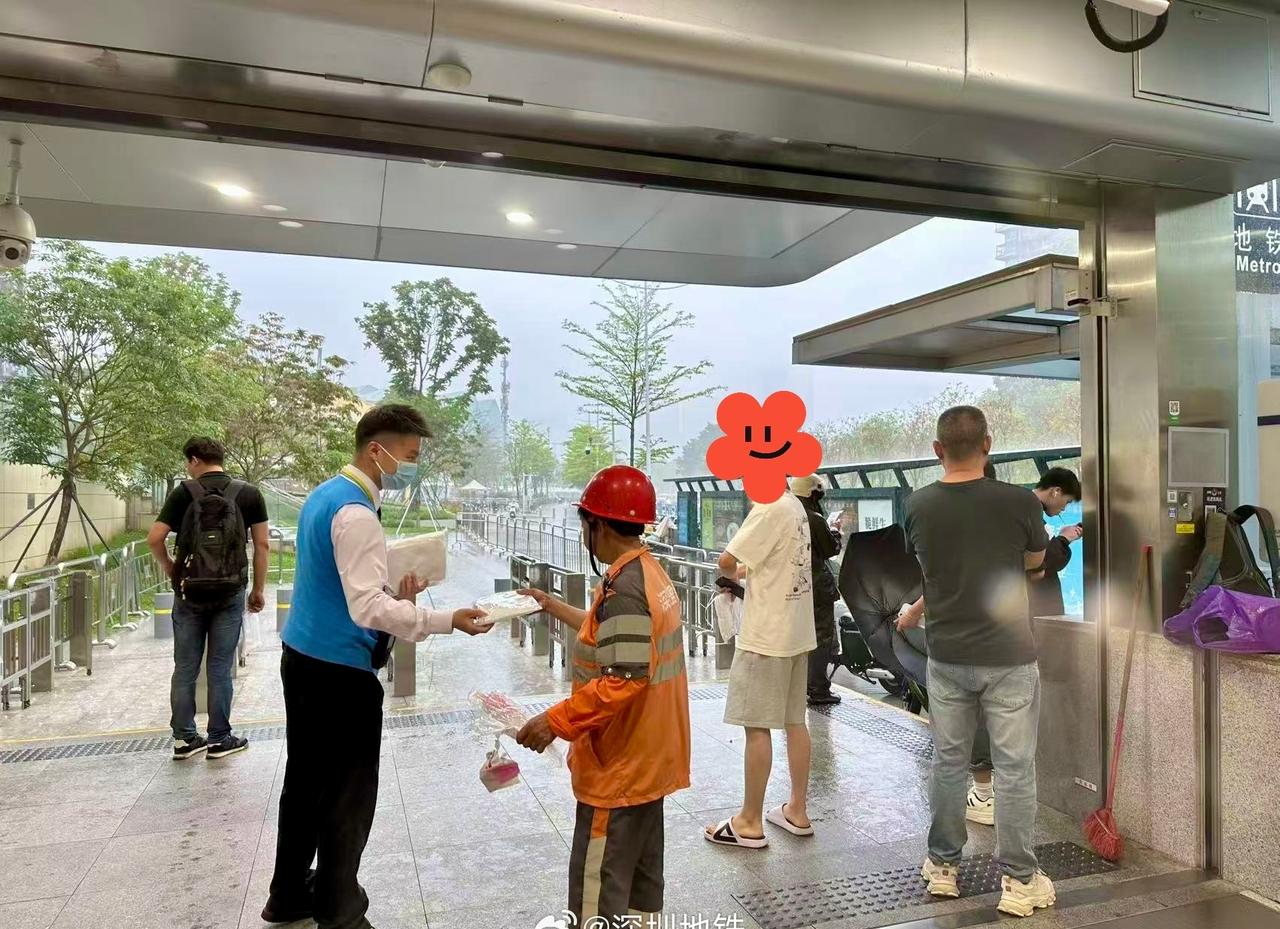 近日,深圳多强对流天气,老铁在出入口为大家送上雨衣,愿这份小小的温暖,伴你一路安心。温馨提示:雨天时请注意安全,小心地滑!广东清明假期有连续暴雨 深圳地铁延时运营