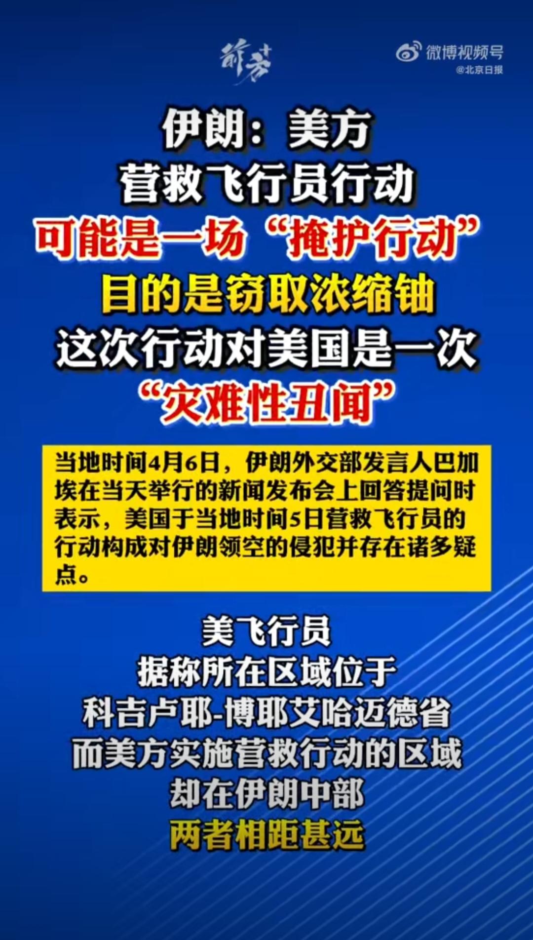 不是为了“拯救瑞恩”而是“偷铀不成蚀把米!所谓救飞行员不过是掩护,真实目标竟是窃取伊斯法罕核设施的高浓缩铀! 波斯外 交 部公开质疑:坠机点在西南部,M军却在数百公里外的中部核设施密集区展开大规模行动,出动庞大机群深入腹地,完全超出营救需求。因此“偷浓缩铀”的动机高度可疑。波斯直言这是漂亮国“灾难性失败”,放话领土遭袭必全力反击。